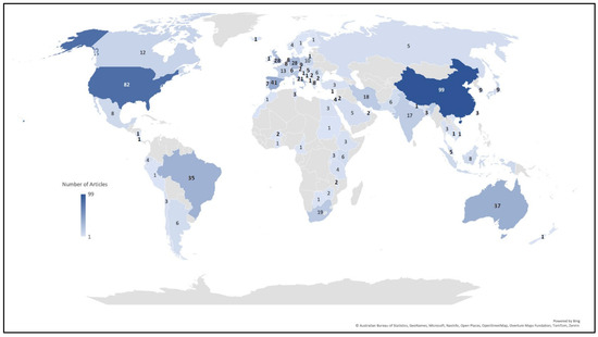 After 2010, publication numbers rose sharply, with annual totals surpassing 20 articles in most years after 2013. This growth aligns with the broader adoption of remote sensing, GIS, and modeling techniques in geomorphology and conservation management [29], as well as the influence of global conservation frameworks that emphasize ecosystem services such as soil retention [42]. The peak was reached in 2023 with 48 publications, indicating that soil erosion in protected areas has emerged as a prominent research theme in conservation science. The subsequent decline in 2024, to 34 publications, may reflect a combination of indexing delays and year-to-year fluctuations, rather than a substantive reduction in research activity. The partial count for 2025 (up to 27 July) reinforces that interpretation.