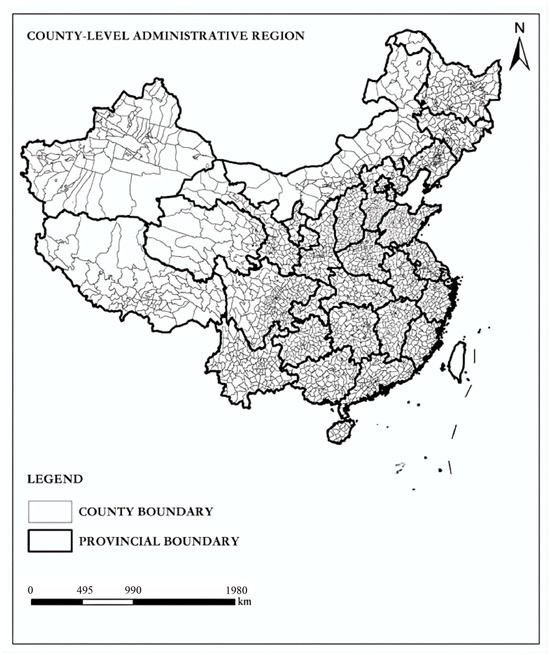 - Zhao, B.; Wang, K. The Differences between County, County-level City and Municipal District in the System of Administrative Divisions in China. J. Geogr. Res. 2022, 5, 25. [Google Scholar] [CrossRef]
