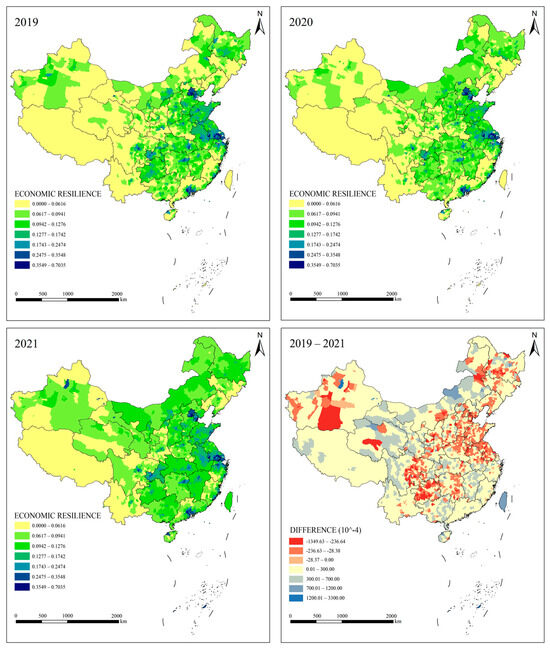 Spatial distribution of economic resilience (2019–2021).