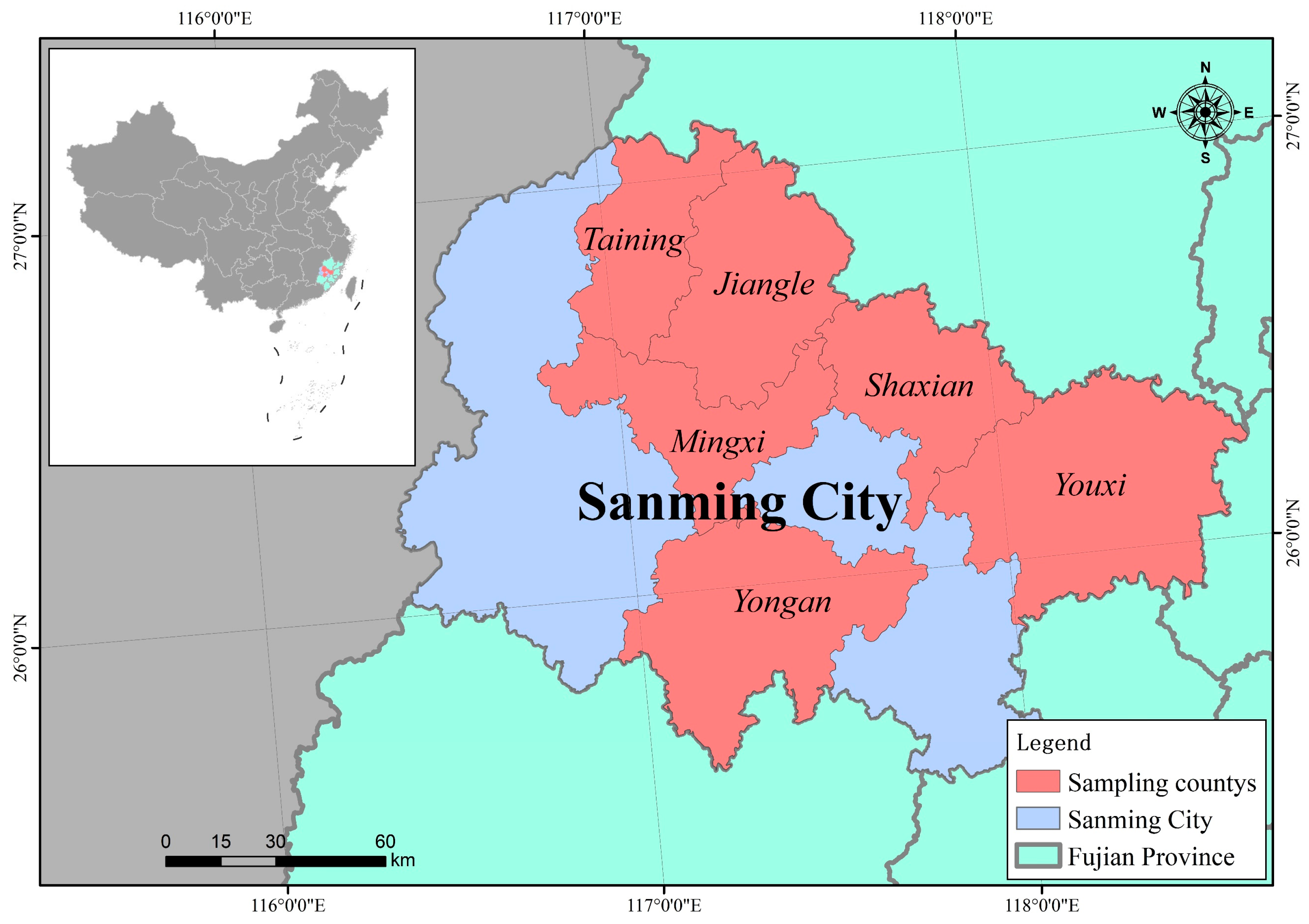 This study selects Sanming City, Fujian Province, China, as the case study area (as shown in
