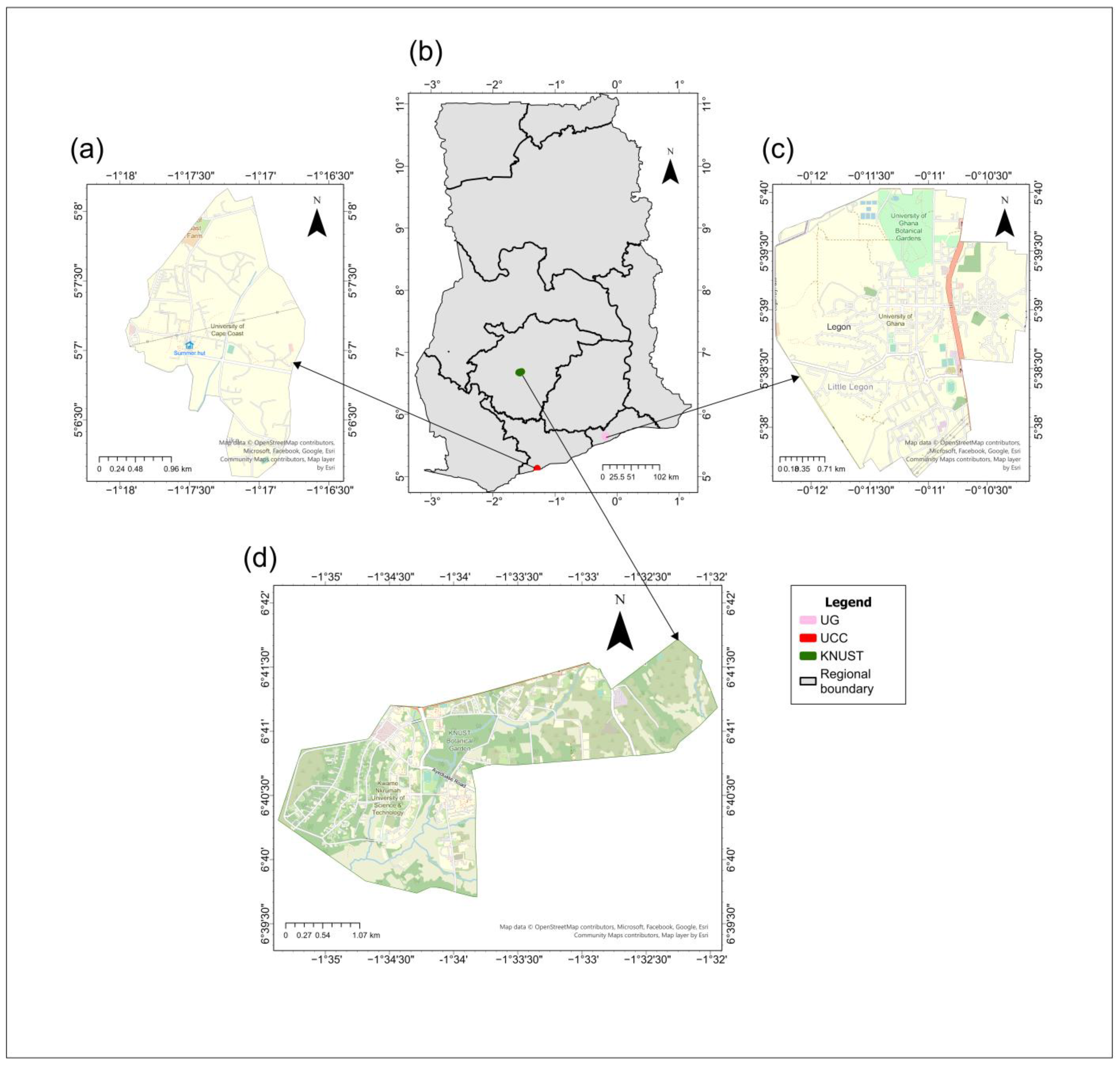 - UCC. Our Campus. Cape Coast: UCC, n.d. Available online: https://ucc.edu.gh/main/explore-ucc/our-campus (accessed on 5 January 2025).