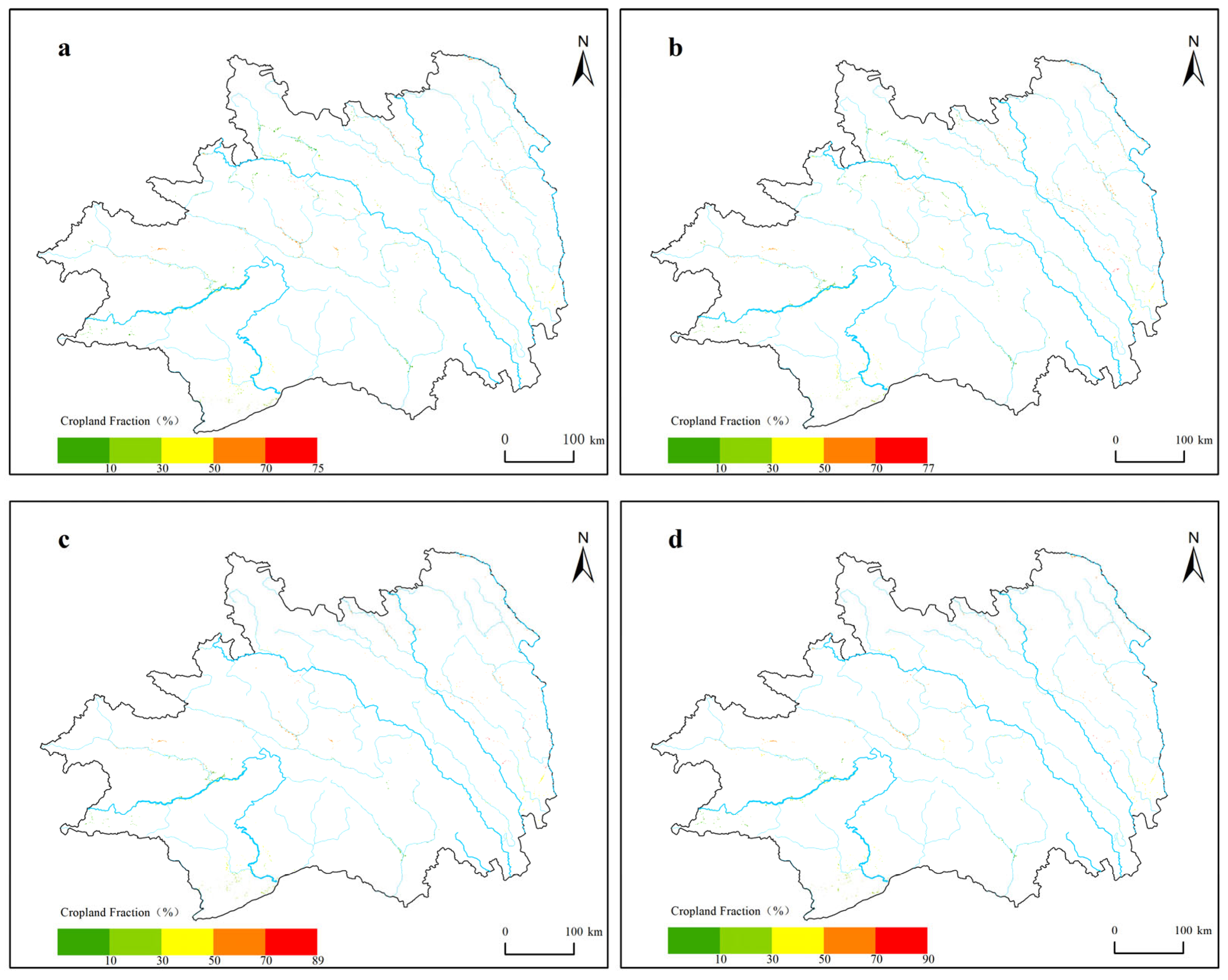 Historical farmland reconstruction commonly utilizes documented data on population, taxation, seed usage, and registered land area, integrated with spatial allocation models to simulate the distribution of cultivated land across suitable areas. These results are often expressed in terms of grid-based cultivation rates to represent land reclamation intensity. The present study adopts the grid-based model developed by Luo et al. [