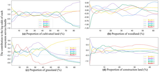 - At the 1 km × 1 km grid scale, each driving factor has an optimal threshold range that increases the likelihood of forming ideal ESBs: cultivated land should be maintained between 16.5% and 36% (and not exceed 59%), while woodland should account for more than 54.3%, water bodies for 3.7–11.4%, grassland for 23.5–50%, and built-up land should not exceed 10.1%. Regulating land use type areas within these ranges can foster the formation of ESBs with high and balanced supply levels, while preventing the emergence of low-supply ESBs.