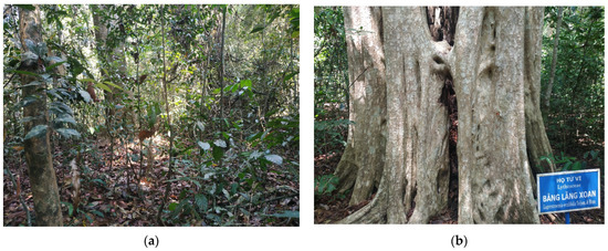 Types of forest: (a) Ma Da Dipterocarp Forest; (b) Logestriemia—Cát Tiên.