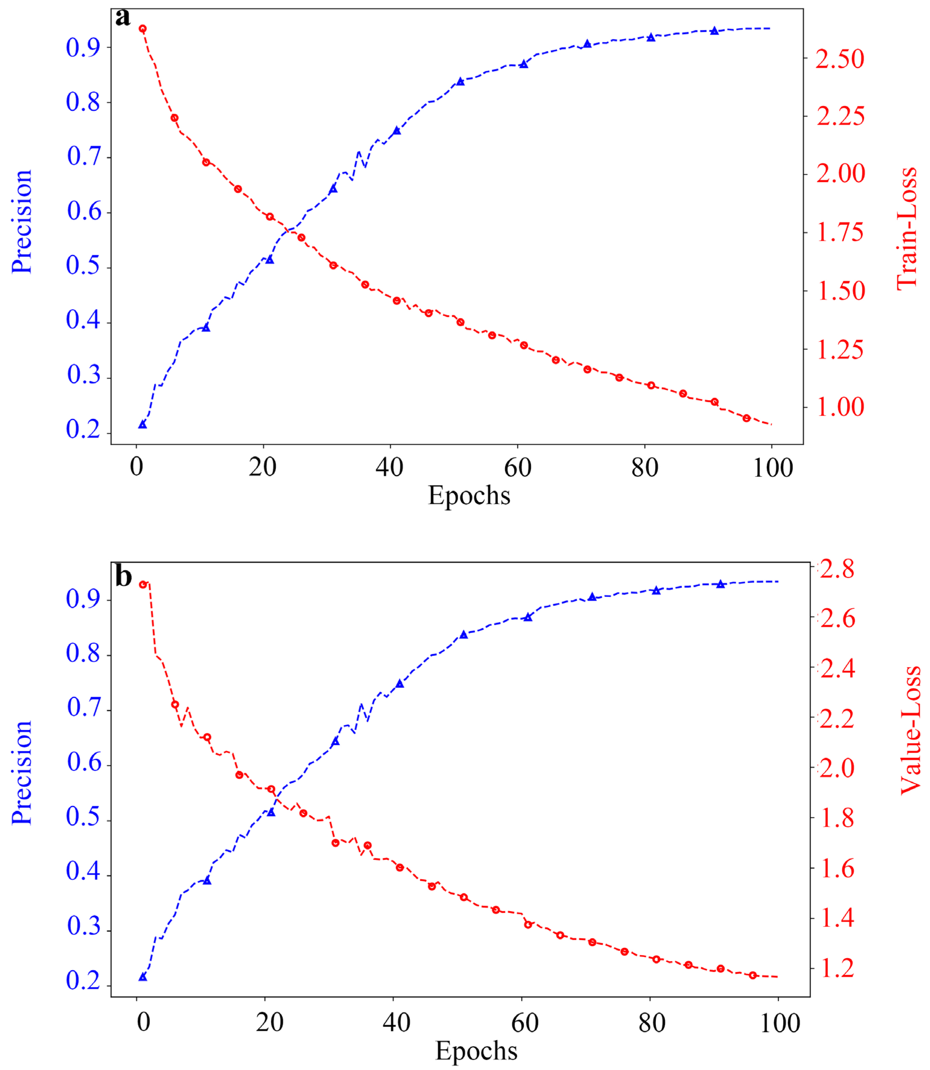Figure 5. Training accuracy and loss curve of the YOLO v8 deep learning model. (a) the classification accuracy of the model; (b) the loss value of the training.