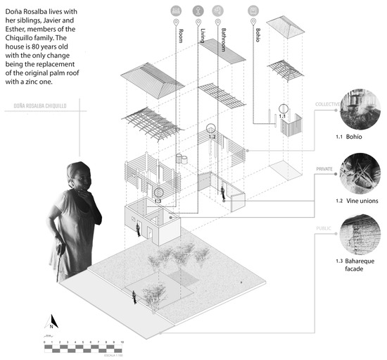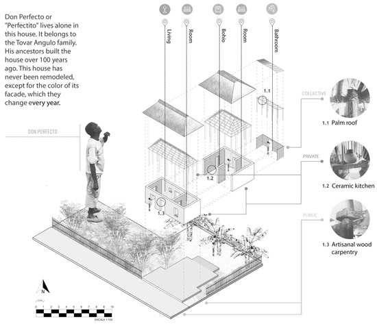 Therefore, the research is framed within a Participatory Action Research (PAR) approach, following the proposals of Paulo Freire and Orlando Fals Borda [20,21]. This methodology enables the collective construction of knowledge, where the community is not the object of study, but rather the active subject in defining its own needs and solutions. During the fieldwork in El Níspero, workshops with Kuagros5, interviews with knowledgeable people, community surveys, and social mapping exercises were conducted. These tools enabled the identification of cultural values associated with ancestral dwellings and their role in transmitting collective memory.