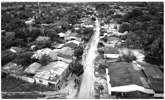 Figure 7. Aerial view of El Níspero. Ma-Majari Community of El Nispero, Montes de Maria, Colombia. 2019. @Daniel Huertas. Afrorural (Afro-rural). The Afro movement in Montes de María has its roots in the Palenque de Angola, established over a hundred years ago. However, there is little awareness of these communities’ cultural reality and identity rights. The founding conditions of their territory have often been blurred or extinguished by military and paramilitary violence during the armed conflict in Colombia.