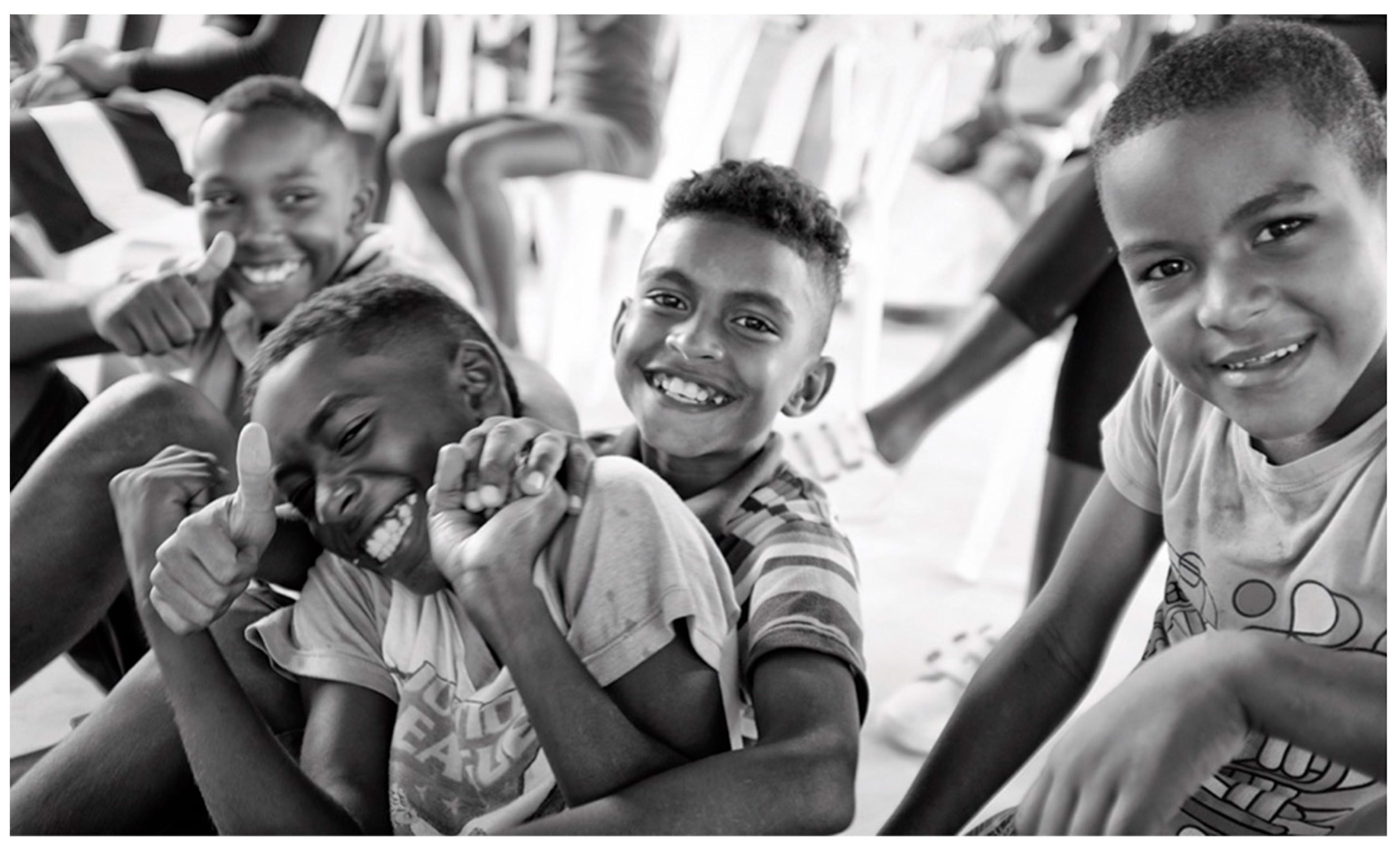 Figure 9. Children in the futures visualization workshop. Ma-Majari Community of El Níspero, Montes de María, Colombia. 2020. @Daniel Huertas. Actitud (Attitude). Identity is a dynamic construction. The new generations demand new readings of identity, which is why it is necessary to understand spatial structures as associations of immaterial elements, not as a consolidation of material distributions. As an articulator of the identity processes of Afro-descendant communities, housing needs to be a protagonist in the renewal of cultural systems.
