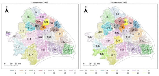 Overall, compared to 2019, the 2023 results reveal stronger valuation of intrinsic housing characteristics, neighbourhood-scale accessibility, and metropolitan-level connectivity, while the price premium attached to district-level sub-centres and highly mixed-use zones weakened. These contrasting patterns suggest a reconfiguration of housing preferences, with comfort-oriented and balanced accessibility gaining importance over dense, multifunctional environments. Taken together, these results provide the foundation for subsequent analyses of spatial heterogeneity and submarket dynamics. While Shanghai is generally regarded as a mature and relatively stable housing market, the pronounced differences observed across the two periods are noteworthy. Without implying direct causality, the pandemic period represents a systemic shock that likely accelerated or revealed these underlying reconfigurations in housing price formation.