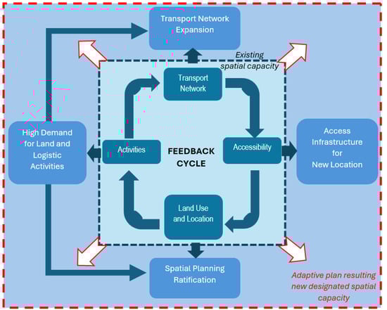 | Planning process, feedback loops, and intervention | A new transport network follows a new industrial area and vice versa | New logistic infrastructure (expansion plan) versus the limit of spatial capacity | Ongoing and future impacts on the protected area | Adaptive and compromise-driven land use planning of future scenarios (anticipative plan) |
