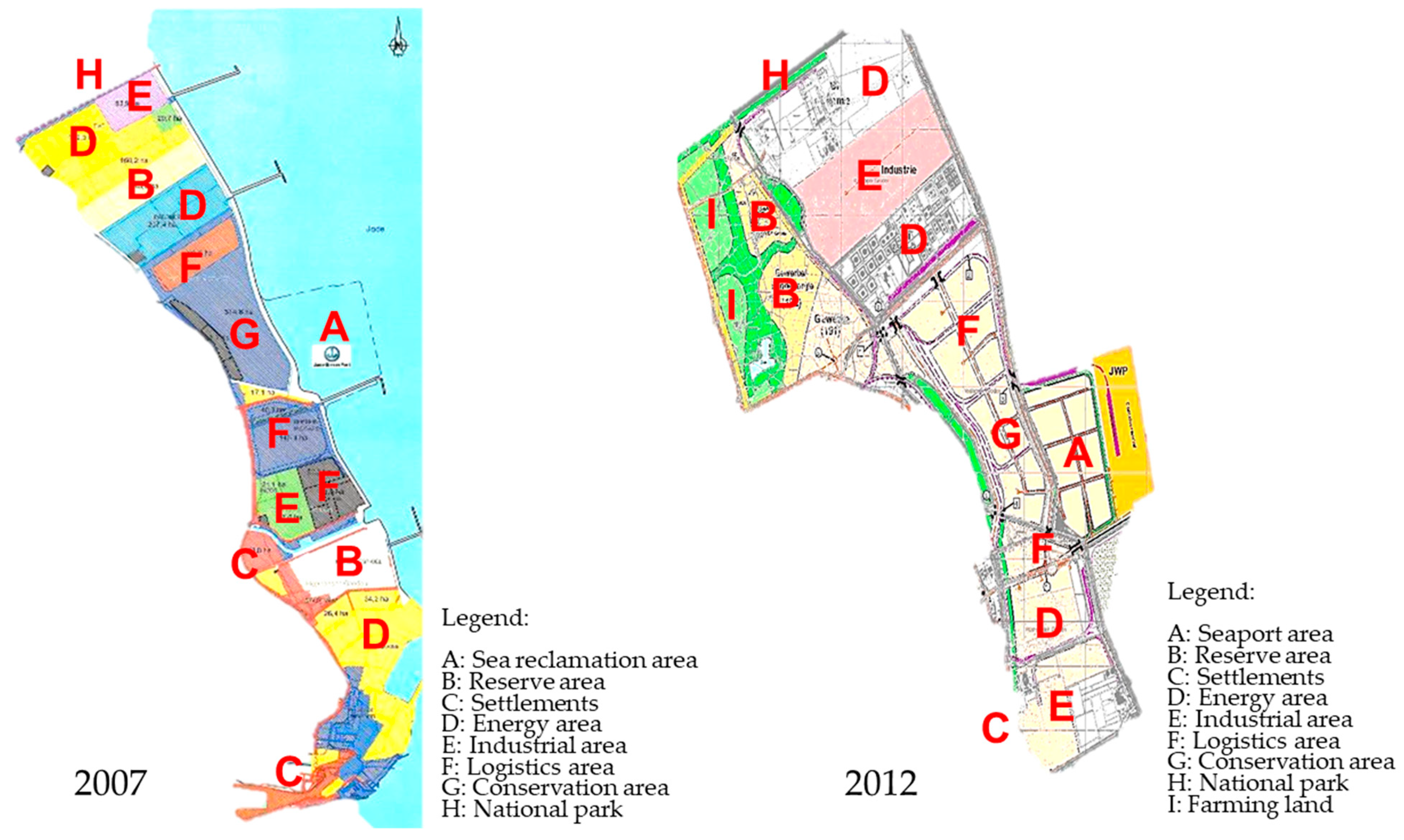 Demand for land on the seaside and landside in sensitive areas | Agglomeration of new industrial areas and storage related to the seaport upon extension of the new transport network | Increase in demand for new transportation networks that connect the outer area and seaport, reaching sensitive areas | Sea reclamation is decided to limit demand on the seaside and protect existing coastal areas | Changes in the process of spatial plans and ratification toward investment-friendly planning |