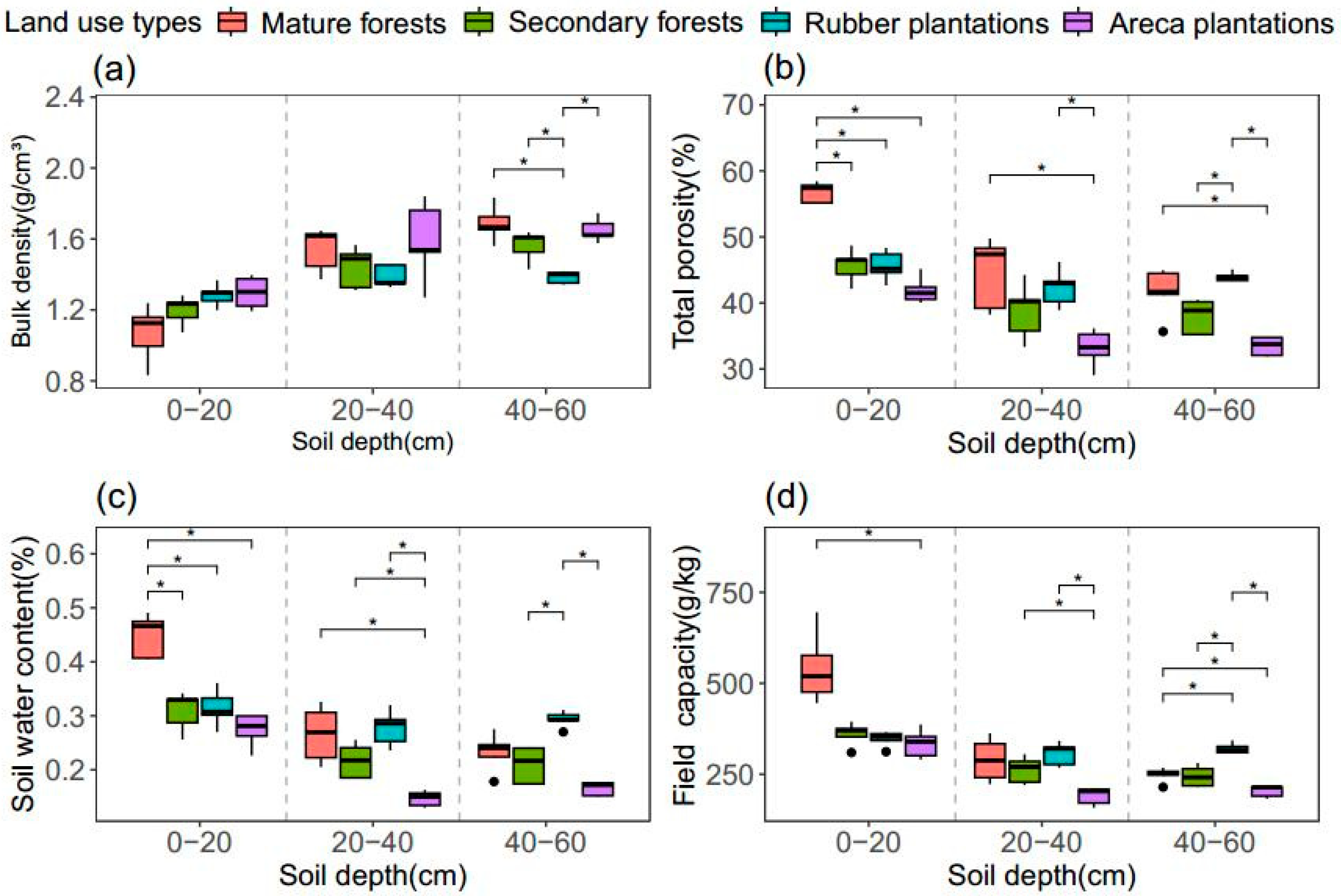 - Zhu, X.; Chen, C.; Wu, J.; Yang, J.; Zhang, W.; Zou, X.; Liu, W.; Jiang, X. Can intercrops improve soil water infiltrability and preferential flow in rubber-based agroforestry system? Soil. Tillage Res. 2019, 191, 327–339. [Google Scholar] [CrossRef]