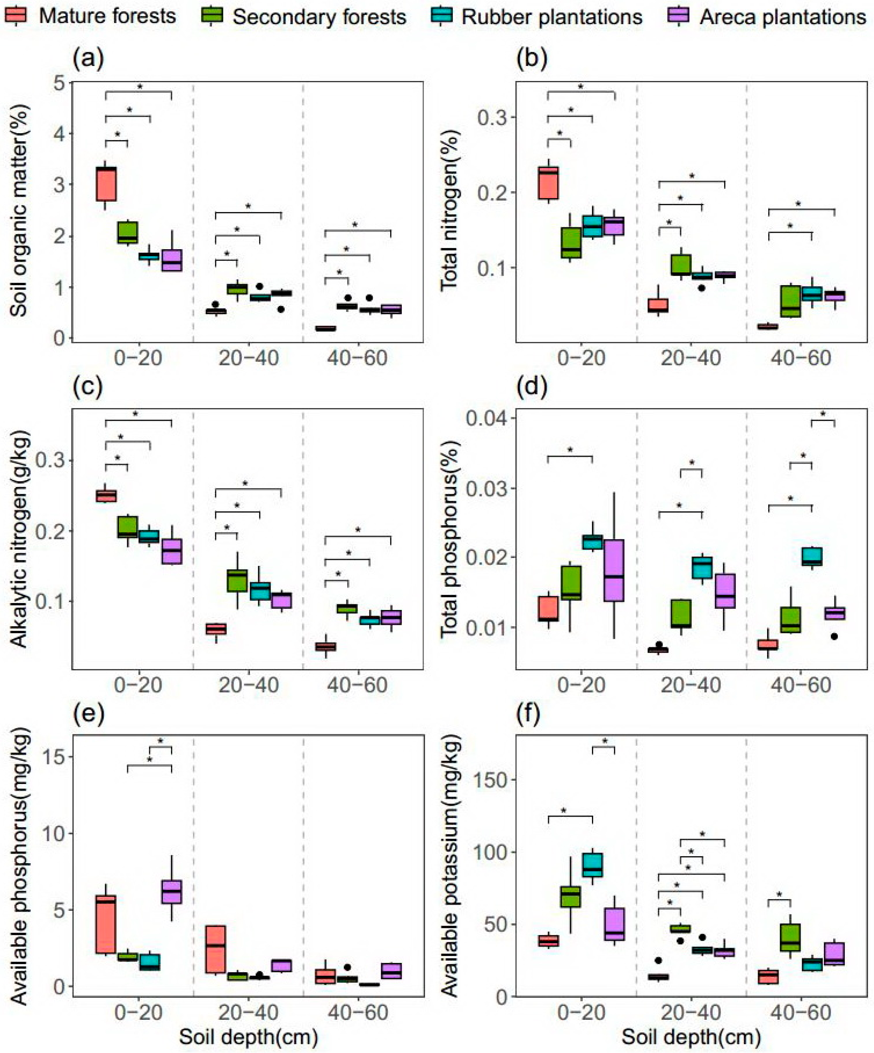 - Wu, J.; Zeng, H.; Zhao, F.; Chen, C.; Liu, W.; Yang, B.; Zhang, W. Recognizing the role of plant species composition in the modification of soil nutrients and water in rubber agroforestry systems. Sci. Total Environ. 2020, 723, 138042. [Google Scholar] [CrossRef]