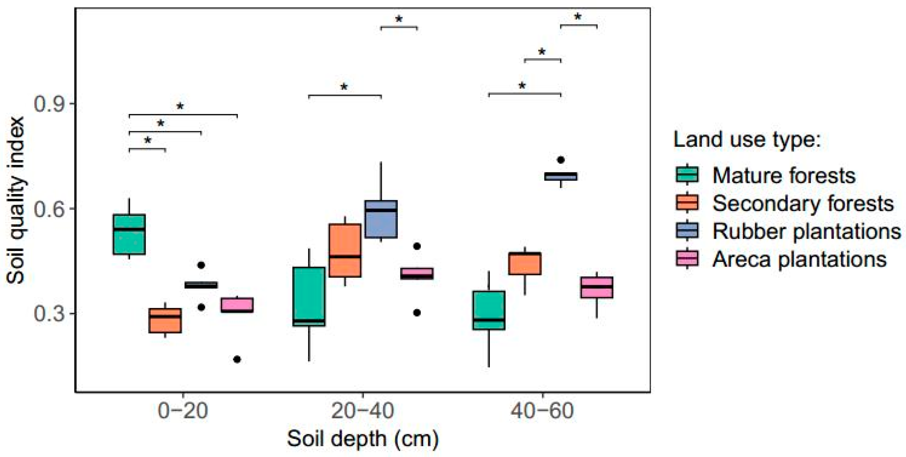 Chicago/Turabian StyleLi, Yanmin, Tianqi Zhang, and Shihang Wang. 2025. "Response of Depth-Stratified Soil Quality to Land-Use Conversion and Its Limiting Factors in Tropical Ecosystems" Land 14, no. 10: 2010. https://doi.org/10.3390/land14102010