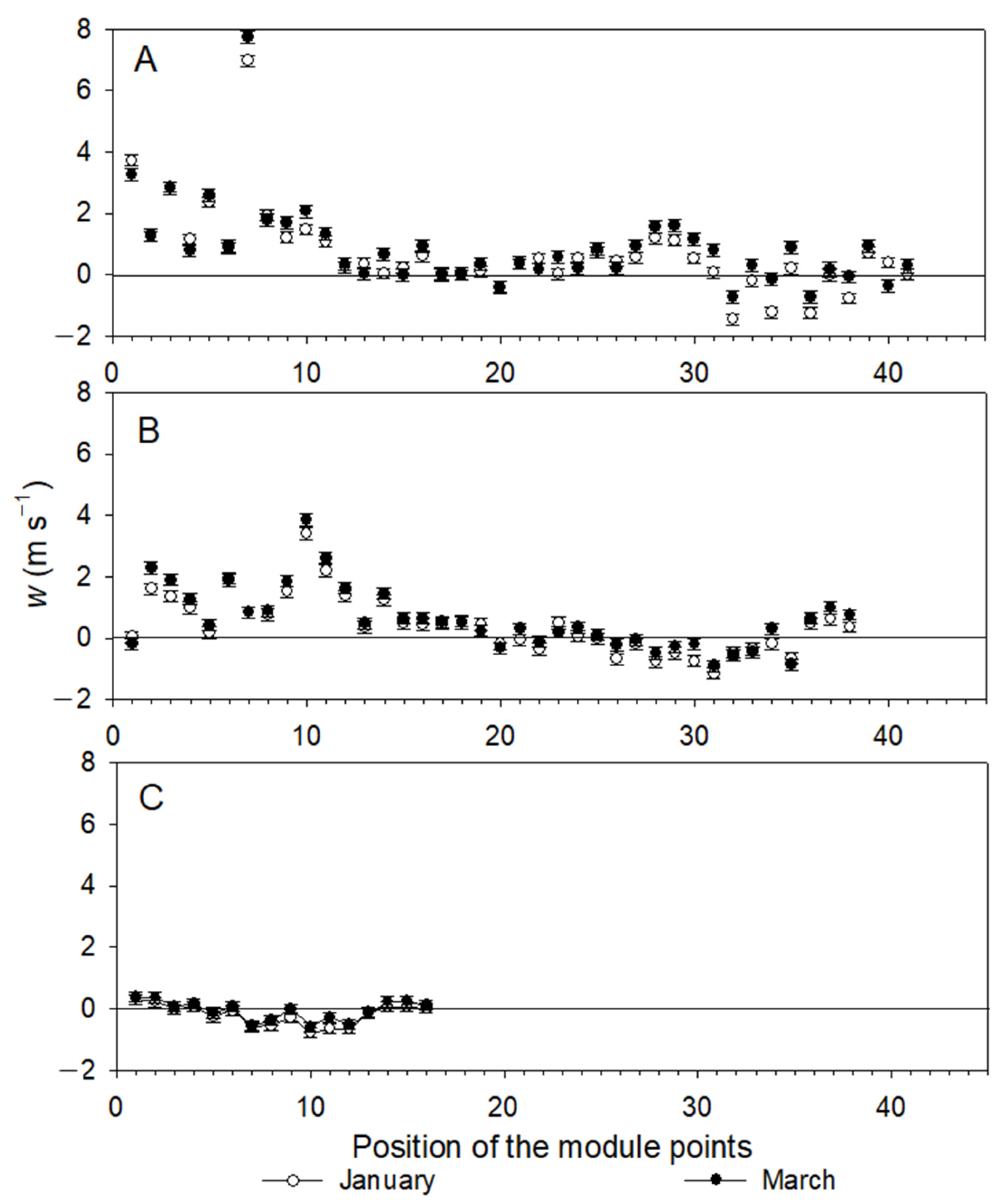 3.3. Vertical Wind Behavior