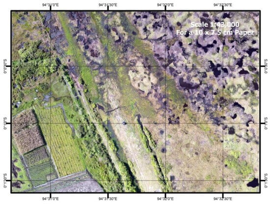 - Fiantis, D.; Rudiyanto; Ginting, F.I.; Agtalarik, A.; Arianto, D.T.; Wichaksono, P.; Irfan, R.; Nelson, M.; Gusnidar, G.; Jeon, S.; et al. Mapping Peat Thickness and Carbon Stock of a Degraded Peatland in West Sumatra, Indonesia. Soil Use Manag. 2024, 40, e12954. [Google Scholar] [CrossRef]