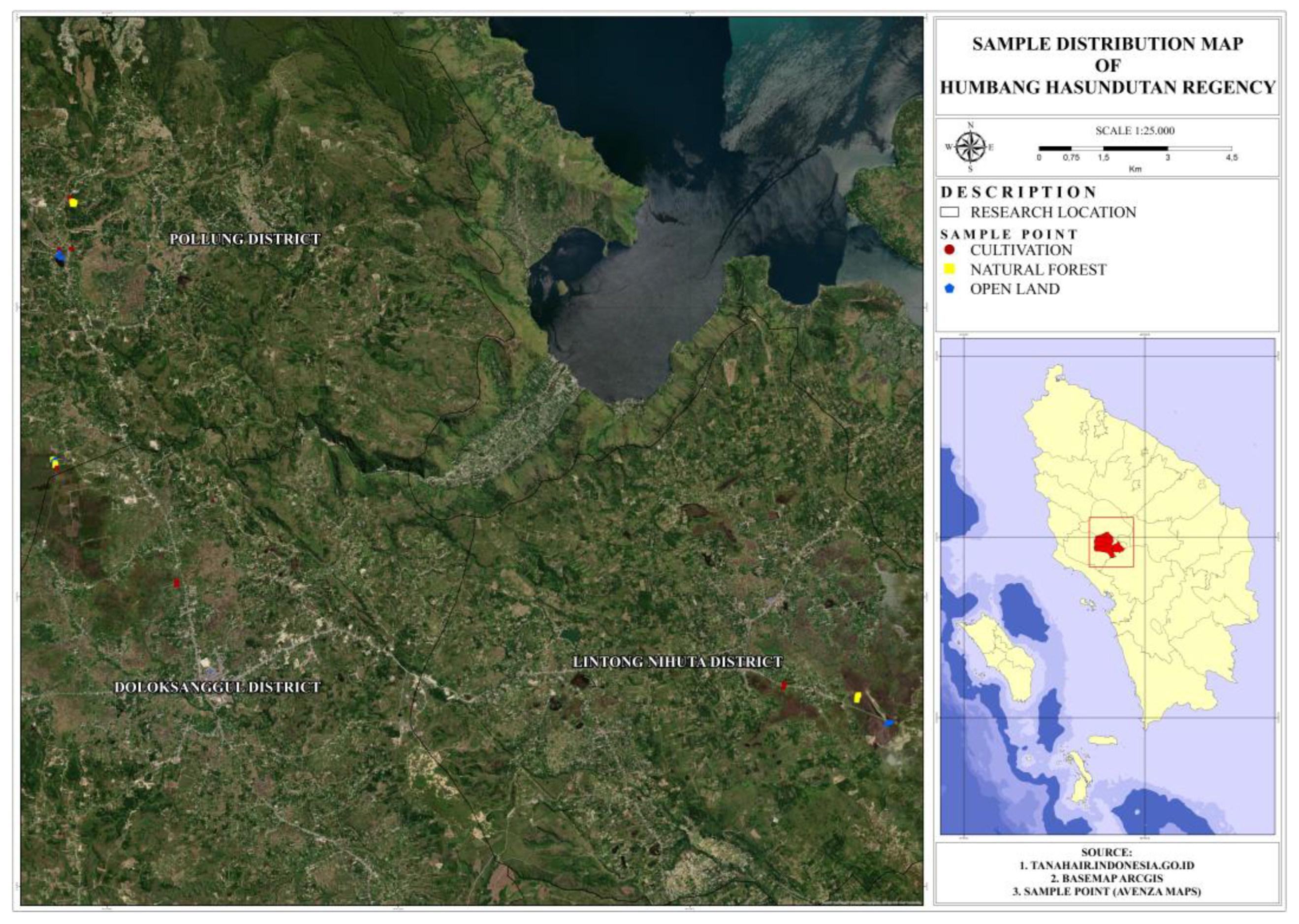 3 | Lintong Nihuta | 10 | (98°52′11.113″ E, 2°15′34.201″ N) | LB210 | Corn, Banana |