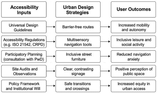 This study is grounded in three interrelated conceptual frameworks: Universal Design (UD), Social Inclusion Theory, and Sustainable Urbanism. These perspectives collectively offer normative, practical, and policy-based lenses for assessing spatial inclusion. UD provides operational criteria for evaluating the built environment; Social Inclusion Theory highlights systemic forms of exclusion and marginalization; and Sustainable Urbanism connects accessibility to long-term community resilience and equitable growth [18].