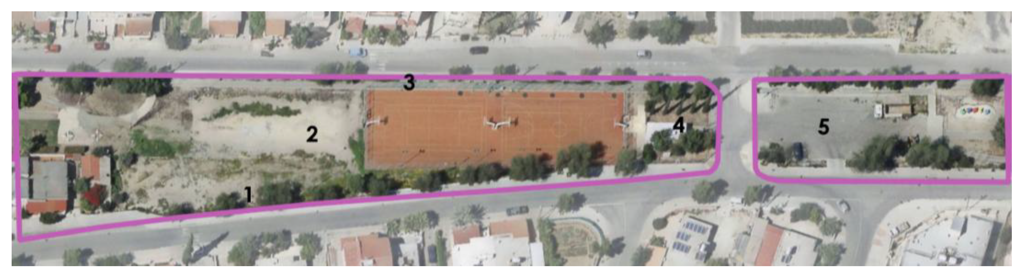 The analysis investigated how these policies are translated into urban design practice in Cyprus. Particular emphasis was placed on implementation gaps, enforceability, and alignment with real-world observations from the park. Cross-references were made between observed deficiencies—such as slope violations, missing signage, or inaccessible seating—and the regulatory standards that were supposed to govern them.