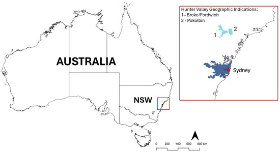 The Hunter Valley Geographic Indications of Broke/Fordwich and Pokolbin in New South Wales, Australia.