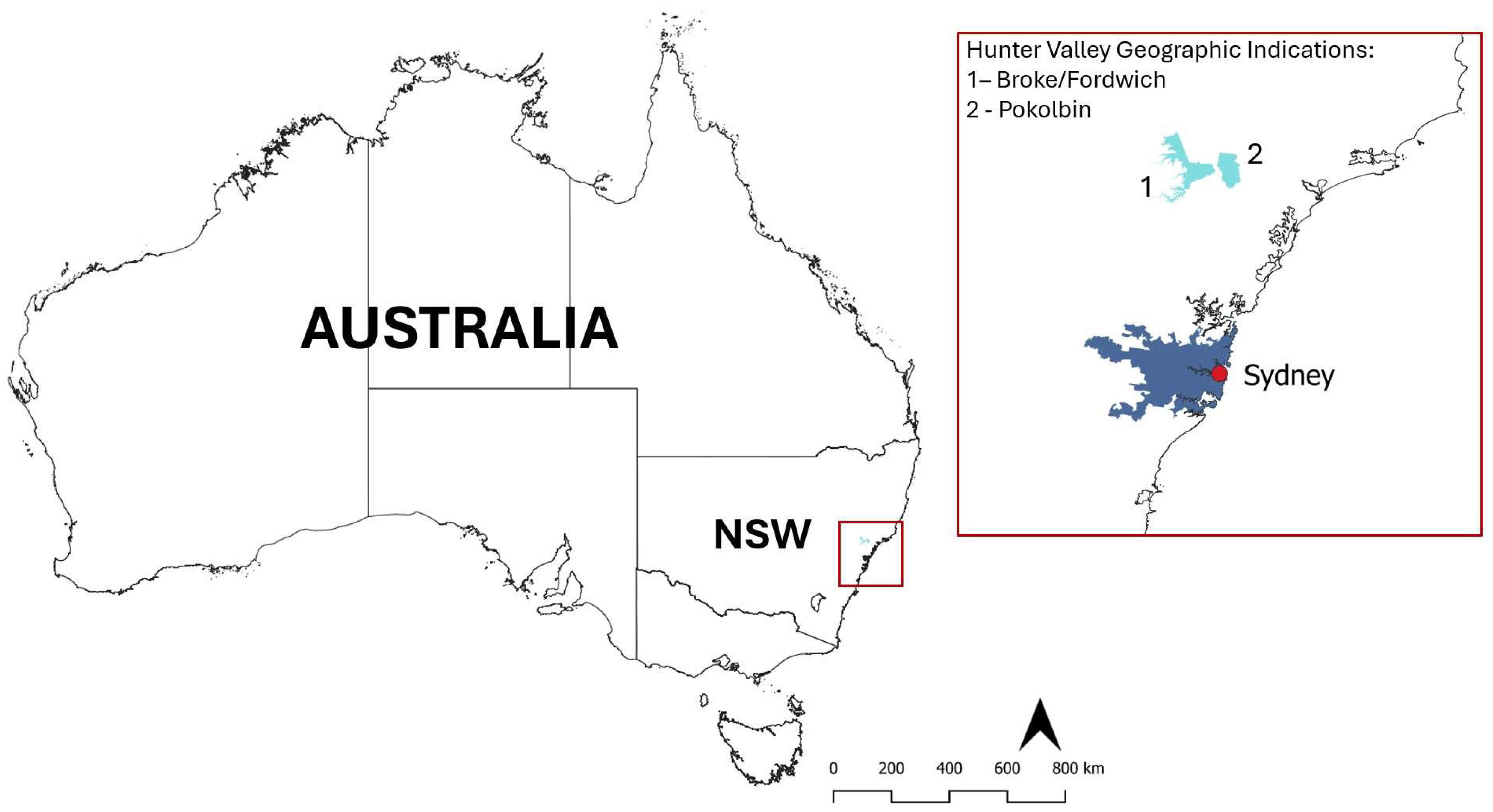 2.3. The Case Study—The Hunter Valley Geographical Indications (GIs)