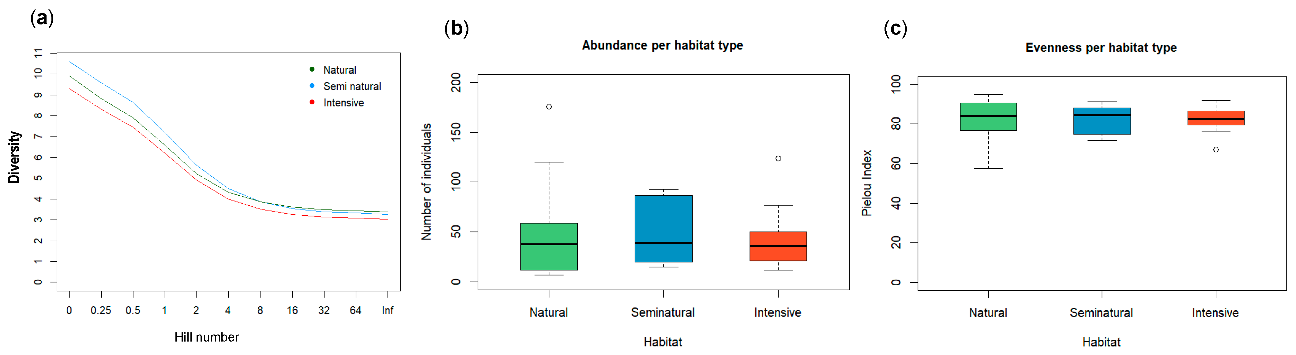 - Hill, M.O. Diversity and evenness: A unifying notation and its consequences. Ecology 1973, 54, 427–432. [Google Scholar] [CrossRef]