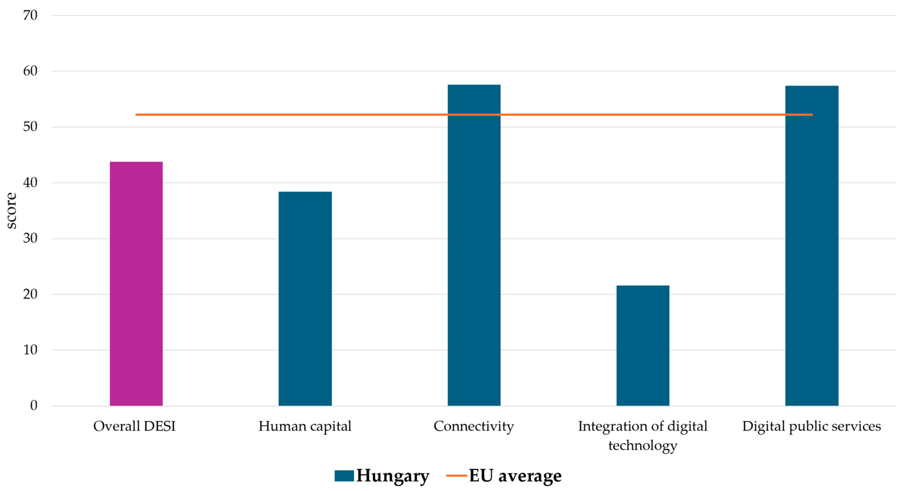 - European Commission. Hungary in the Digital Economy and Society Index; European Commission: Brussels, Belgium, 2025; Available online: https://digital-strategy.ec.europa.eu/en/policies/desi-hungary (accessed on 5 March 2025).