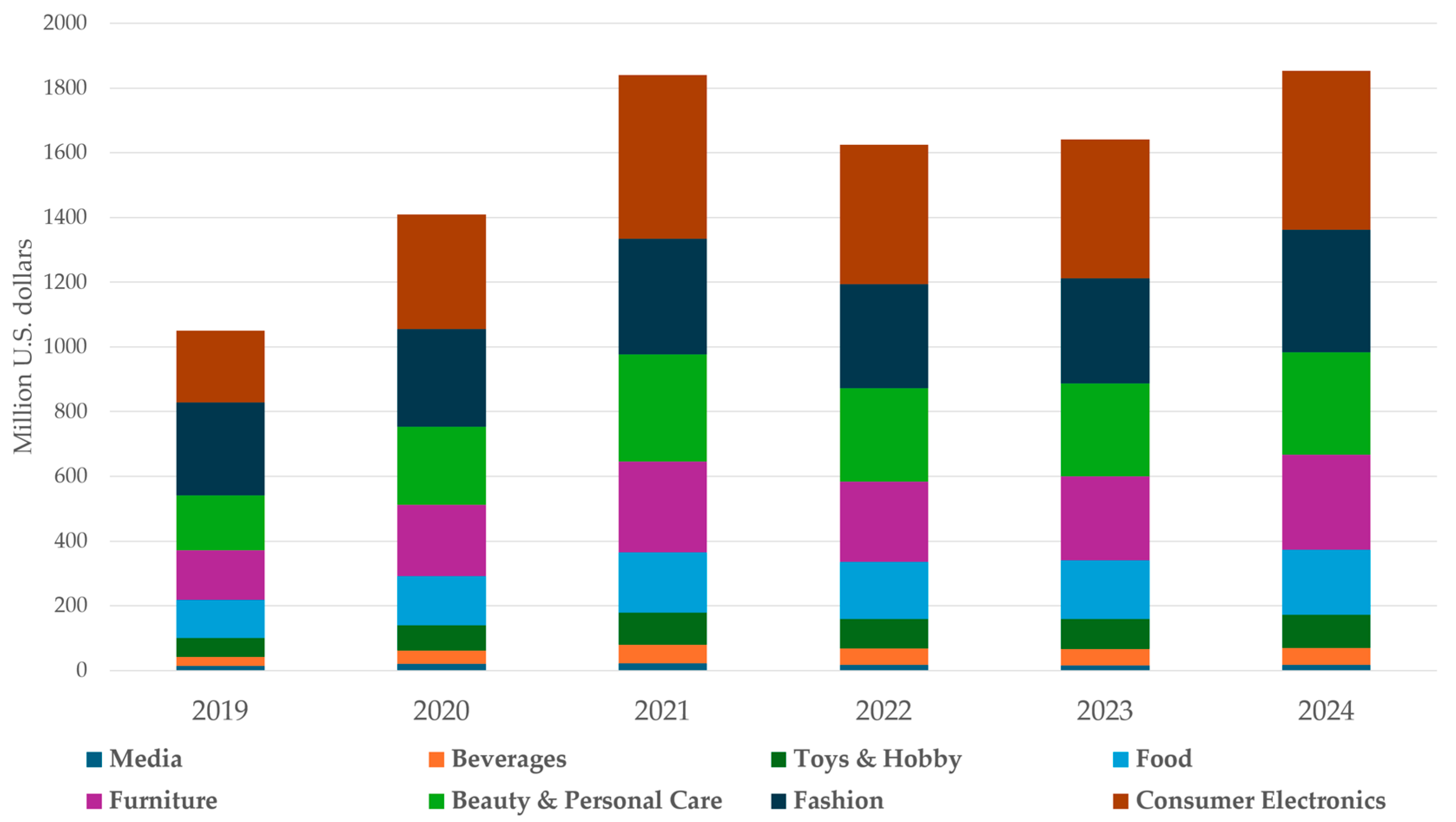 - Statista. E-Commerce Revenue in Hungary from 2019 to 2024, by Segment; Statista: Hamburg, Germany, 2025; Available online: https://www.statista.com/forecasts/1312894/hungary-e-commerce-segment-revenue (accessed on 23 April 2025).