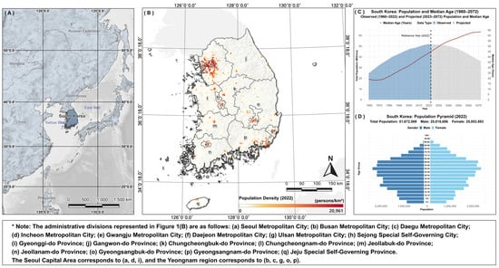 - National Registration Demographics Ministry of Internal Affairs and Security. Available online: https://jumin.mois.go.kr (accessed on 15 August 2025).