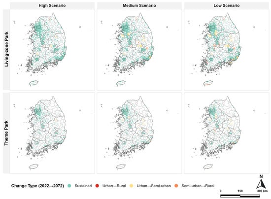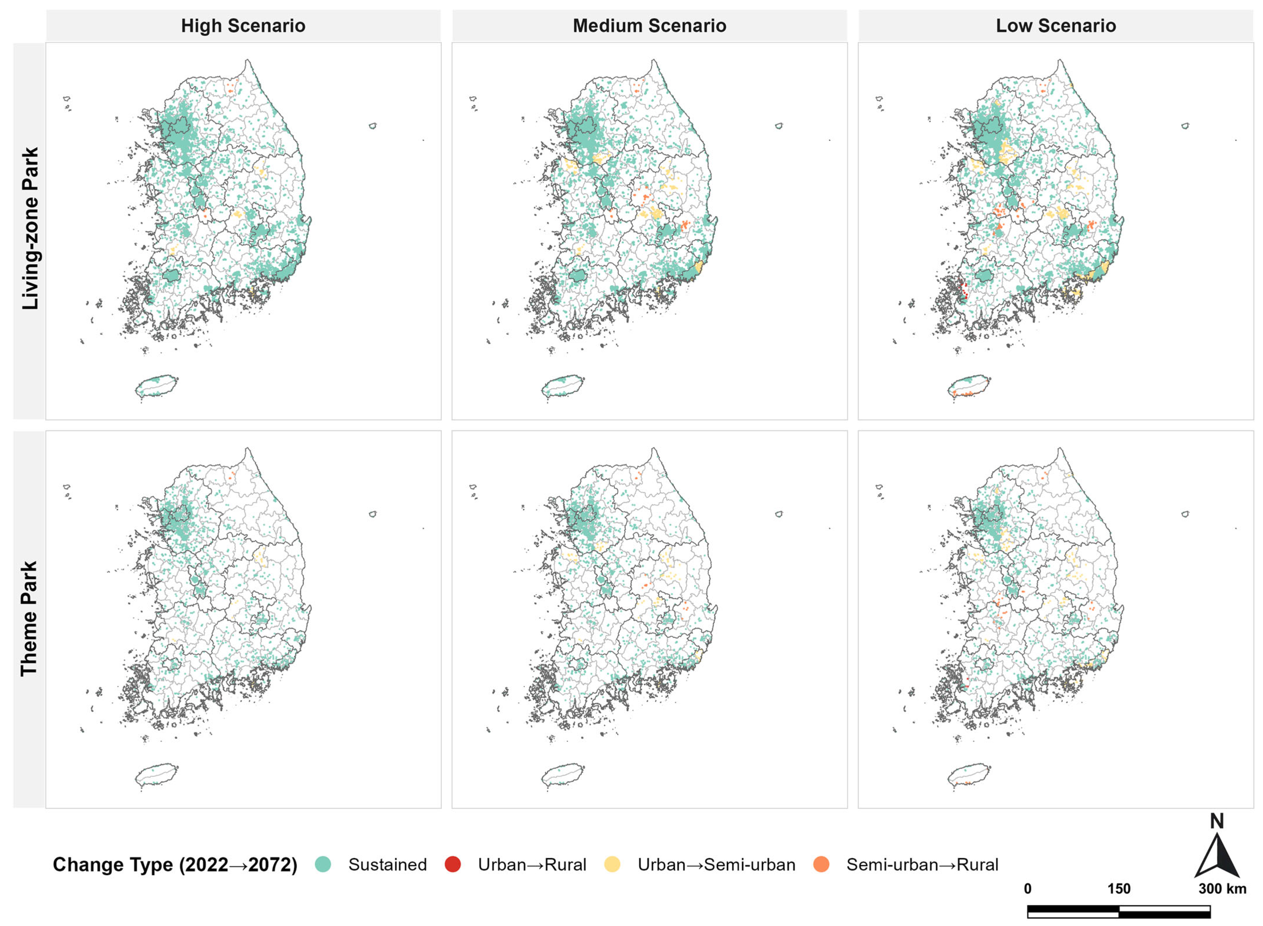 | Urban Park Type | Scenario | Maintained | Urban → Semi-Urban | Urban → Rural | Semi-Urban → Rural |