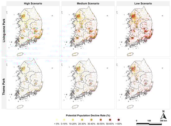 Kim, D.; Kim, Y.; Sung, H.C.; Jeon, S. A Spatiotemporal Analysis of Potential Demand for Urban Parks Using Long-Term Population Projections. Land 2025, 14, 2045. https://doi.org/10.3390/land14102045