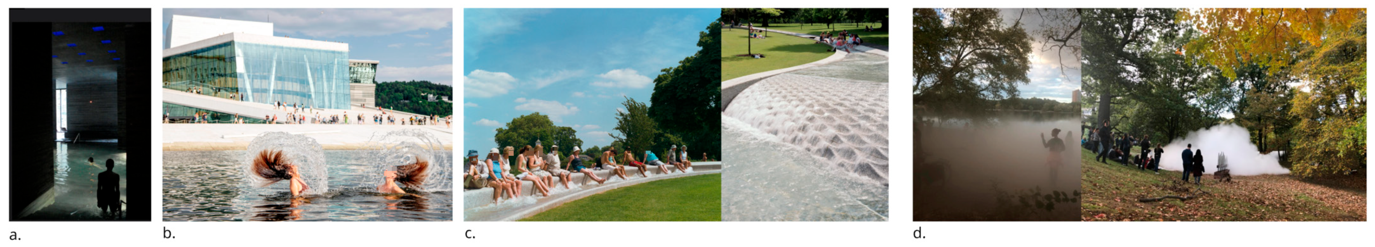 3.2.2. Engaging with Water: Immersion, Motion, Attunement, and Rejuvenation