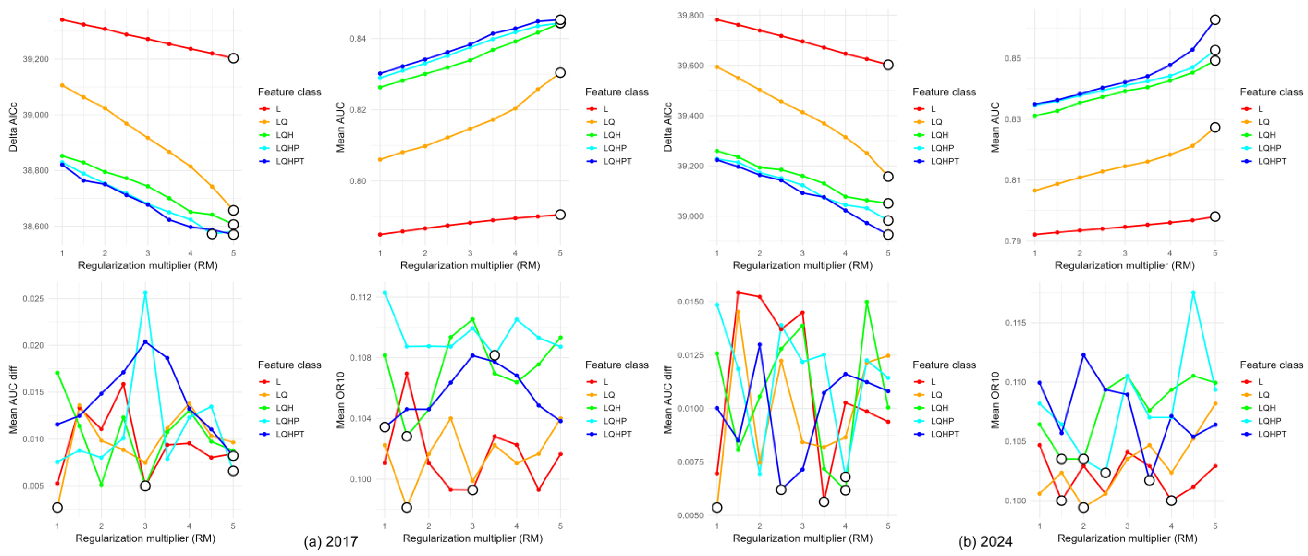 - Radosavljevic, A.; Anderson, R.P. Making better MAXENT models of species distributions: Complexity, overfitting and evaluation. J. Biogeogr. 2014, 41, 629–643. [Google Scholar] [CrossRef]