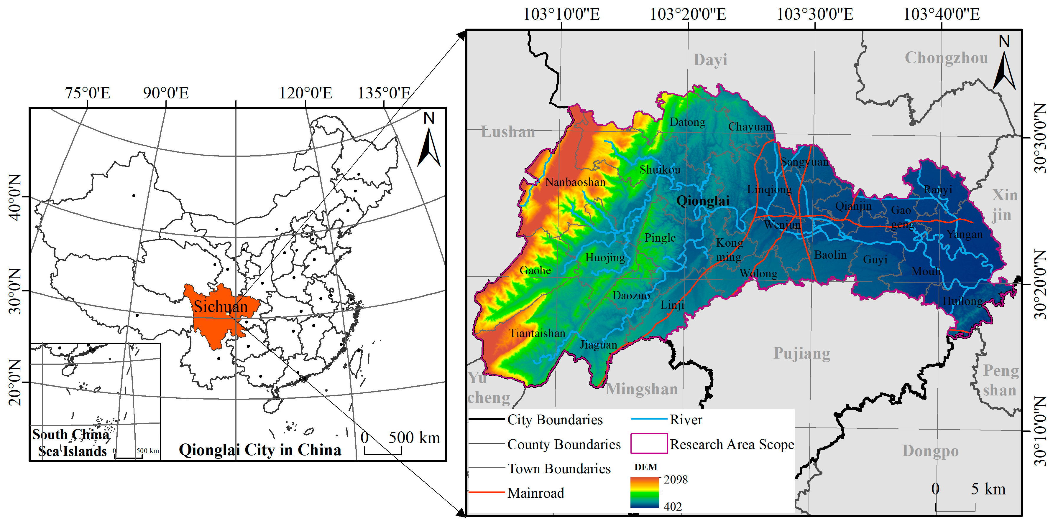 | Panel data | Statistical data on national economic and social development | 2010–2020 | Township level, county level | Qionglai Statistical Yearbook |