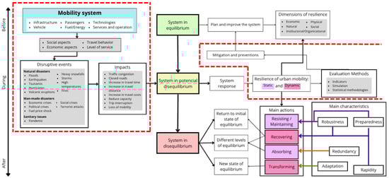 It is important to emphasize that the conceptual framework constructed is predominantly grounded in the research conducted by Gonçalves & Ribeiro [23], who examined the resilience of transportation systems, and Ribeiro & Gonçalves [19], who explored the concept of urban resilience.