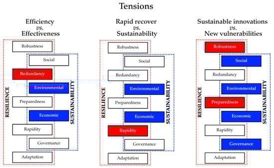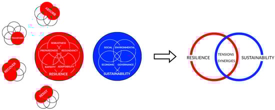 According to Marchese et al. [2], both concepts are organized in the literature in three ways: (1) resilience as a component of sustainability, (2) sustainability as a component of resilience, and (3) resilience and sustainability as separate goals. The first perspective suggests that enhancing resilience strengthens a system’s sustainability, whereas improving sustainability alone may not inherently increase resilience. Resilience would be a means to achieve lasting sustainability. The second perspective considers resilience the ultimate goal of the system, with sustainability as a contributing factor. In this view, increasing sustainability increases resilience, but increasing resilience doesn’t increase sustainability. The third perspective describes the terms as concepts with different goals that can either complement or compete with each other. This perspective is primarily found in the fields of civil infrastructure, urban planning, and public policy [2].