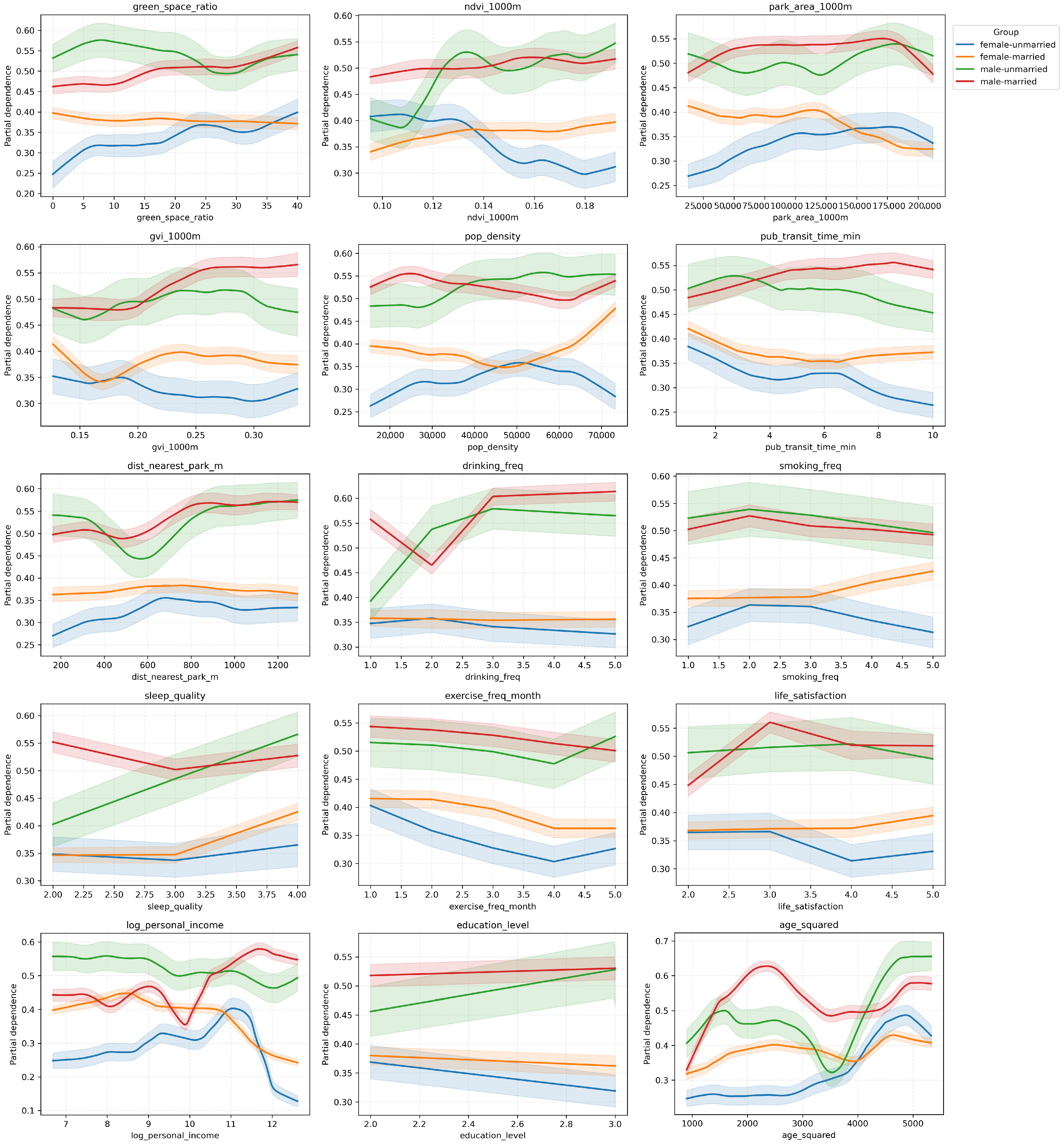 Chicago/Turabian StyleZhong, Xiaohua, Yang Xiao, and Yihui Huang. 2025. "Nonlinear Associations Between Built Environment and Overweight: Gender and Marital Status Differences in Urban China" Land 14, no. 10: 2064. https://doi.org/10.3390/land14102064