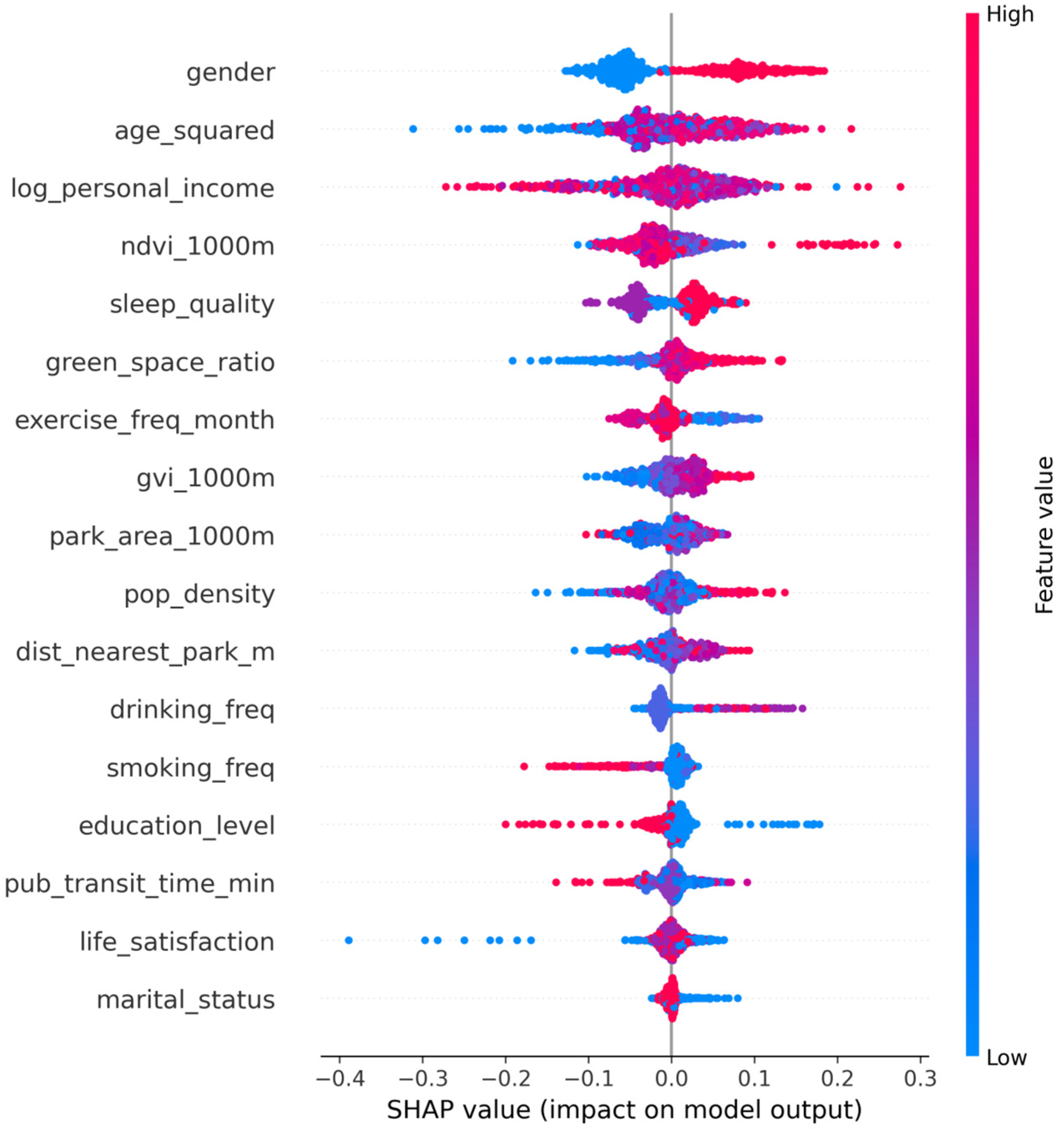 - Chen, Y.; Zhang, X.; Grekousis, G.; Huang, Y.; Hua, F.; Pan, Z.; Liu, Y. Examining the importance of built and natural environment factors in predicting self-rated health in older adults: An extreme gradient boosting (XGBoost) approach. J. Clean. Prod. 2023, 413, 137432. [Google Scholar] [CrossRef]