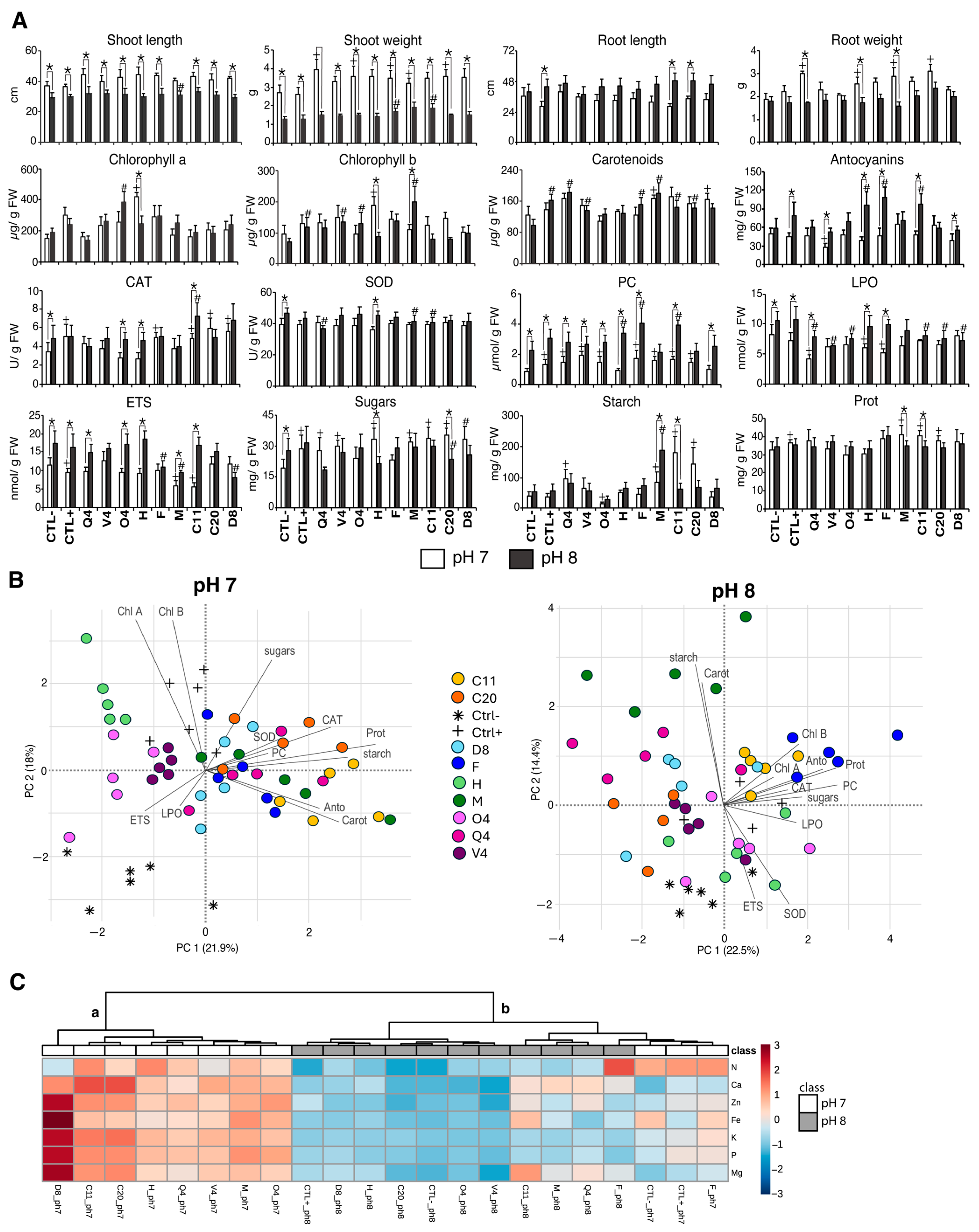 APA StyleSantos, J., Cardoso, P., Rocha, R., Pinto, R., Lopes, T., Patinha, C., Guilherme, R., Ferreira, A., & Figueira, E. (2025). Phosphate-Solubilizing Bacteria from Different Genera, Host Plants, and Climates: Influence of Soil pH on Plant Growth and Biochemistry. Land, 14(10), 2065. https://doi.org/10.3390/land14102065