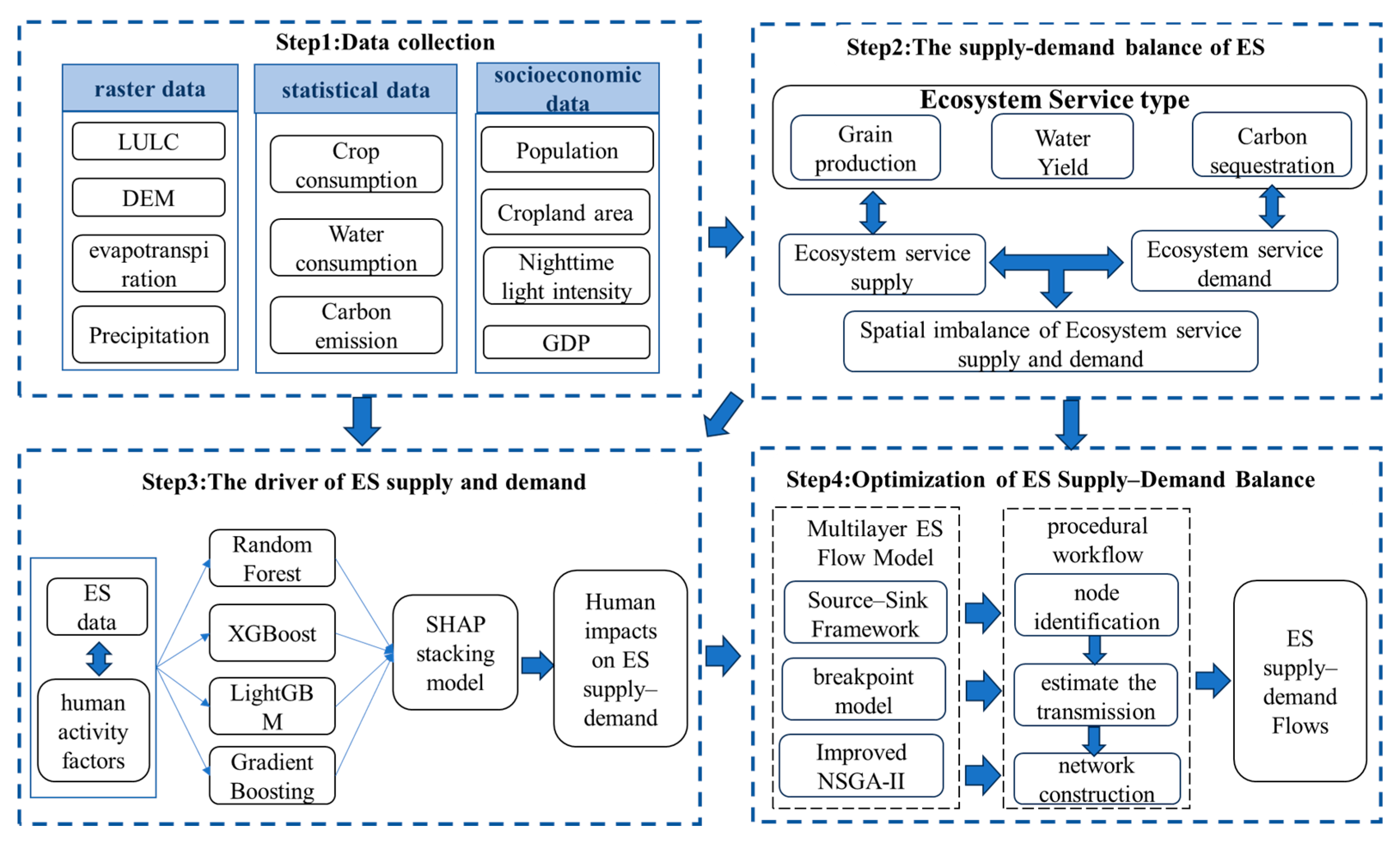 - How can the spatial configuration and supply–demand regulation of multiple ESs be optimized at the regional level to achieve coordinated multifunctionality and ecological sustainability?
