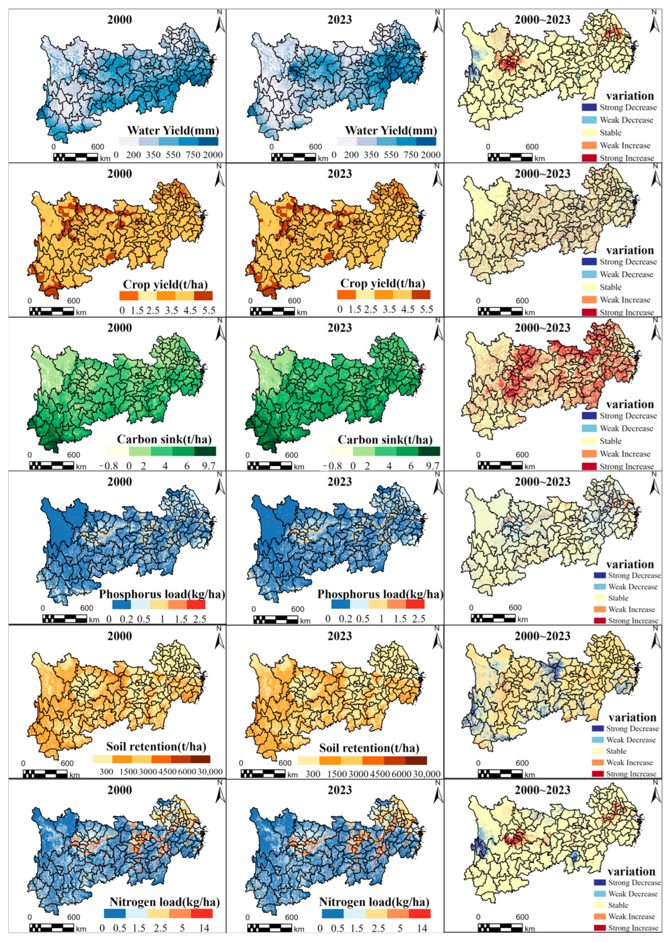 - How can a regional-scale evaluation framework be constructed to accurately identify supply–demand balance of key ESs, such as water yield, crop production, and carbon sequestration, across the YREB?
