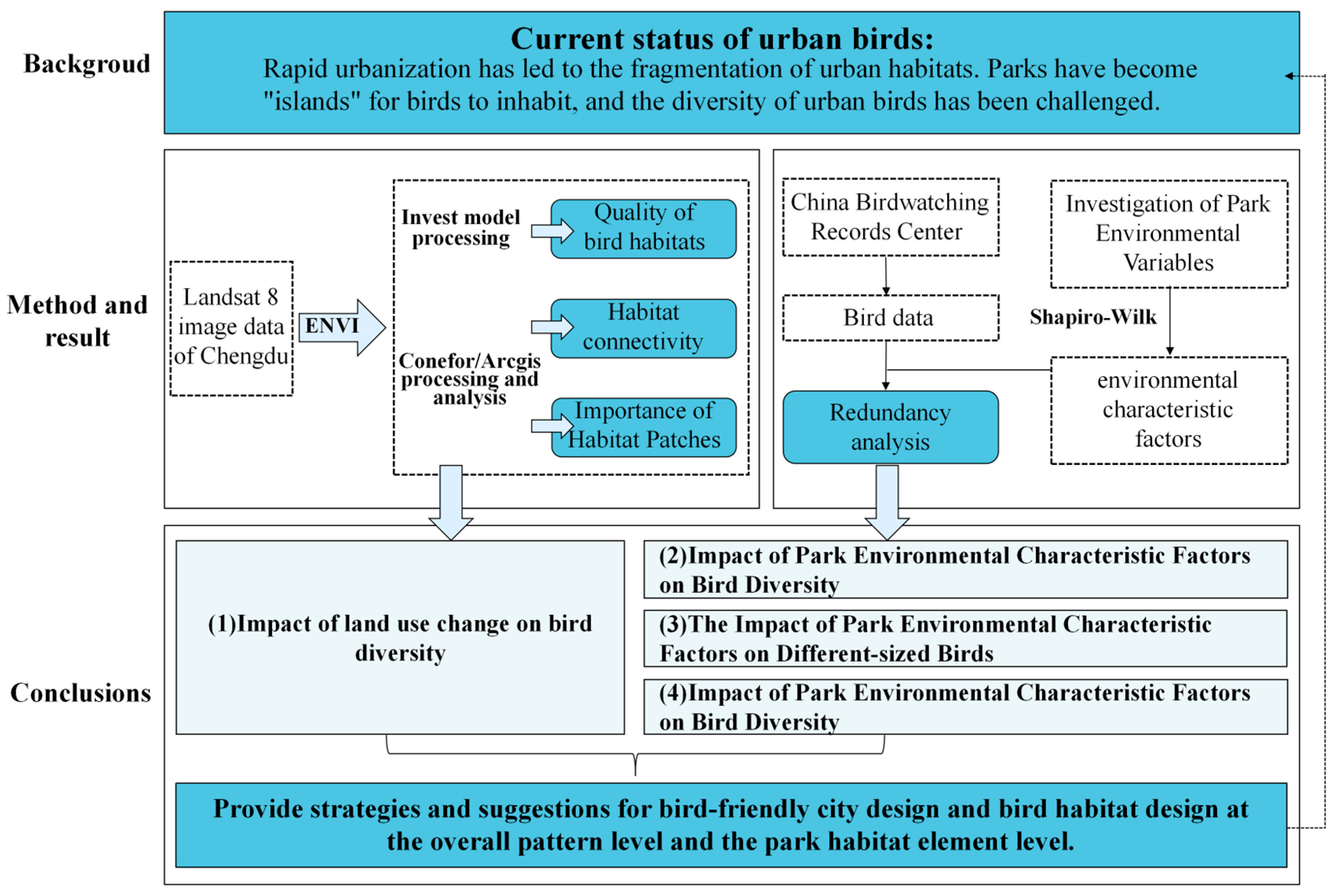 Liao, C.; Jiang, Y.; Yang, M.; Feng, K.; Zhang, J. Investigating the Impact of Urban Parks on Bird Habitats and Diversity Through Remote Sensing: A Case Study of Chengdu City (China). Land 2025, 14, 2086. https://doi.org/10.3390/land14102086