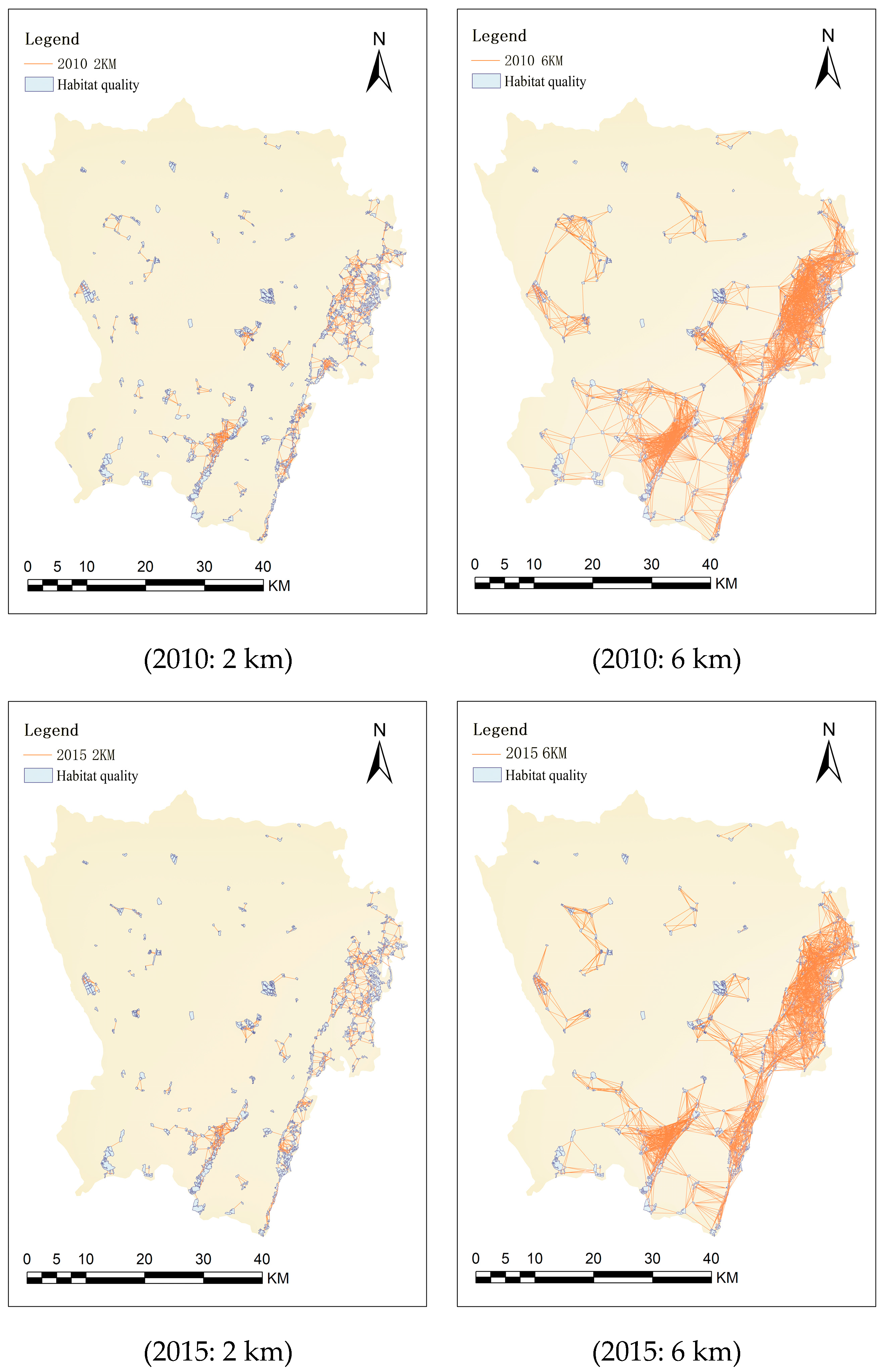 Year | Patch Number | High-Quality Patch Area | Corridor Quantity | |