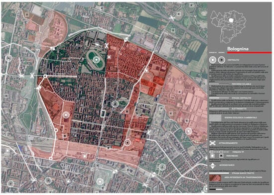 14]—strongly ask the project about a possible syntax capable of interpreting the different local environments and urban landscapes which make up the urban as a regional manifestation according to a system of qualifying relationships, an overall hypothesis of urban re-composition and restructuring, and a framework of priorities that tentatively organizes and guides the regeneration action towards a vision—i.e., a narrative construct grounded in space that allows defining a structural-strategic architecture for the planning action (see