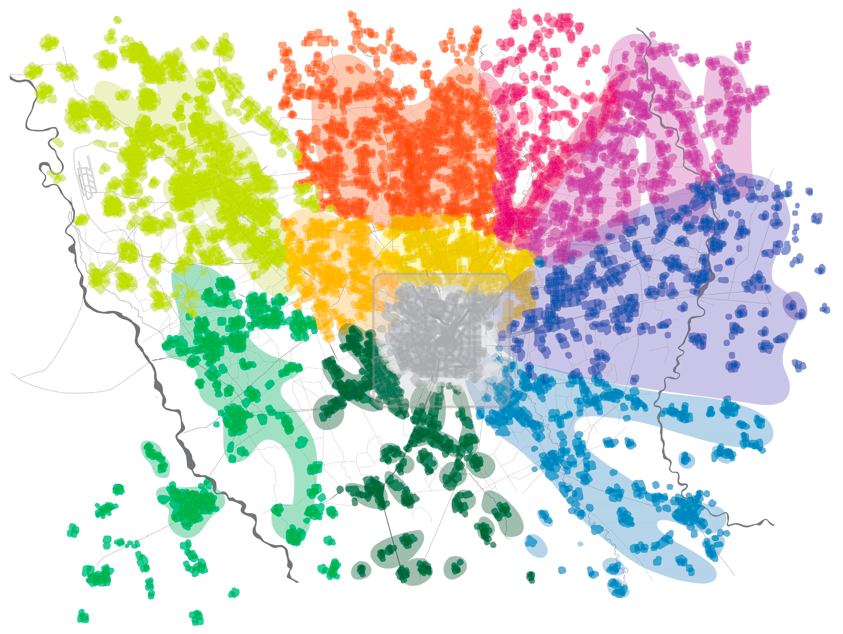 These characteristics undermine urban planning that is intended to revolve around the notion of the neighborhood, especially when the aim is to recognize a relationship of identity correspondence with a supposed stable community. What emerges in the use of regional space of the urban are rather ‘communities of practices’ [
