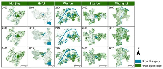 Accordingly, the central urban areas of these five cities are selected as the study areas (Figure 1). An overview of the blue–green space characteristics of each city is provided in Table 1. To minimize potential errors arising from remote sensing data accuracy and extreme weather conditions in any single year, three study periods-2000, 2010, and 2020-are chosen.