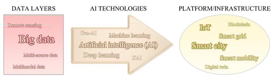 - Yan, Z.J.; Jiang, L.; Huang, X.L.; Zhang, L.F.; Zhou, X.X. Intelligent urbanism with artificial intelligence in shaping tomorrow’s smart cities: Current developments, trends, and future directions. J. Cloud Comput. 2023, 12, 179. [Google Scholar] [CrossRef]