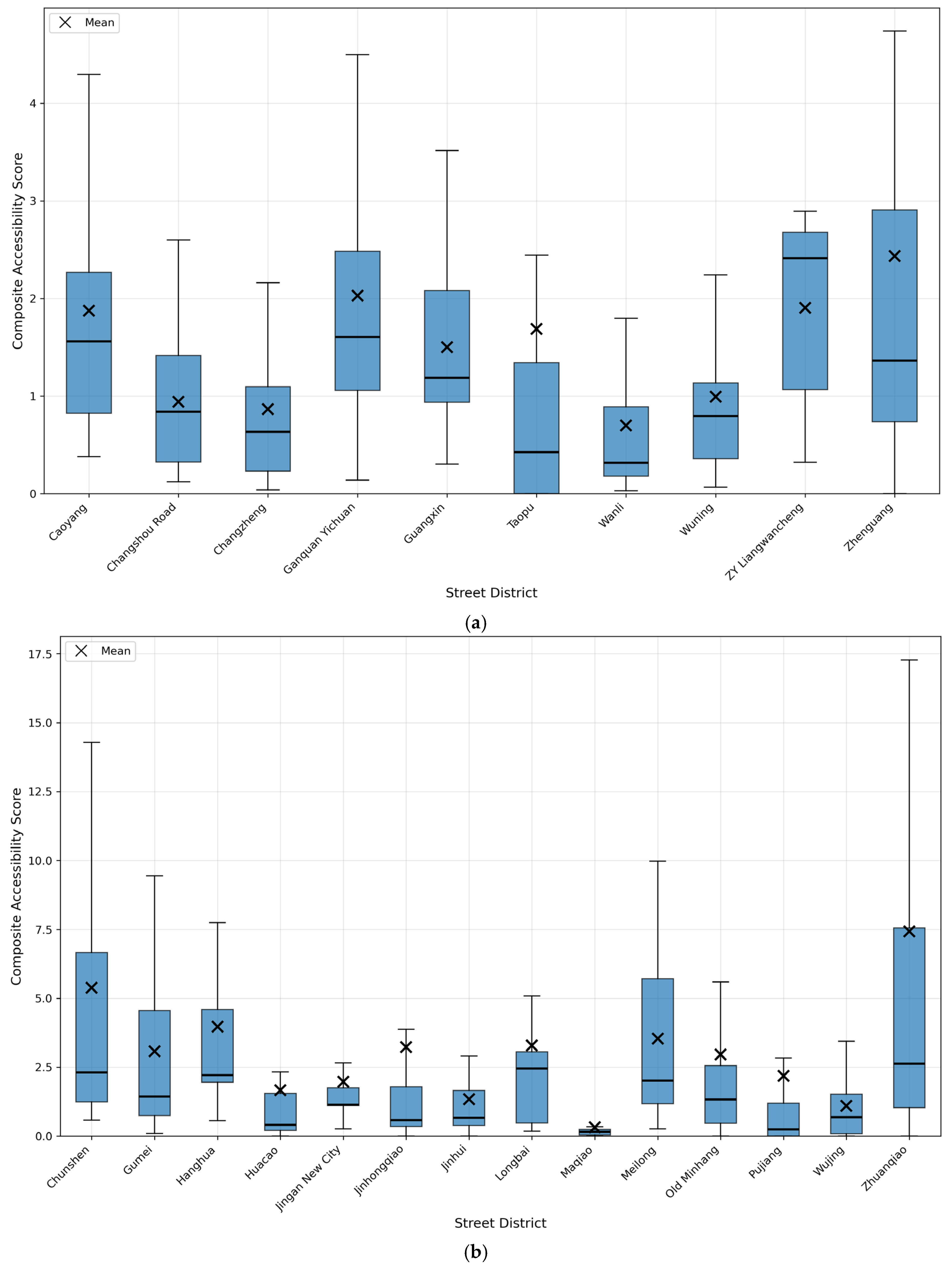 4.4. Spatial Distribution of Accessibility