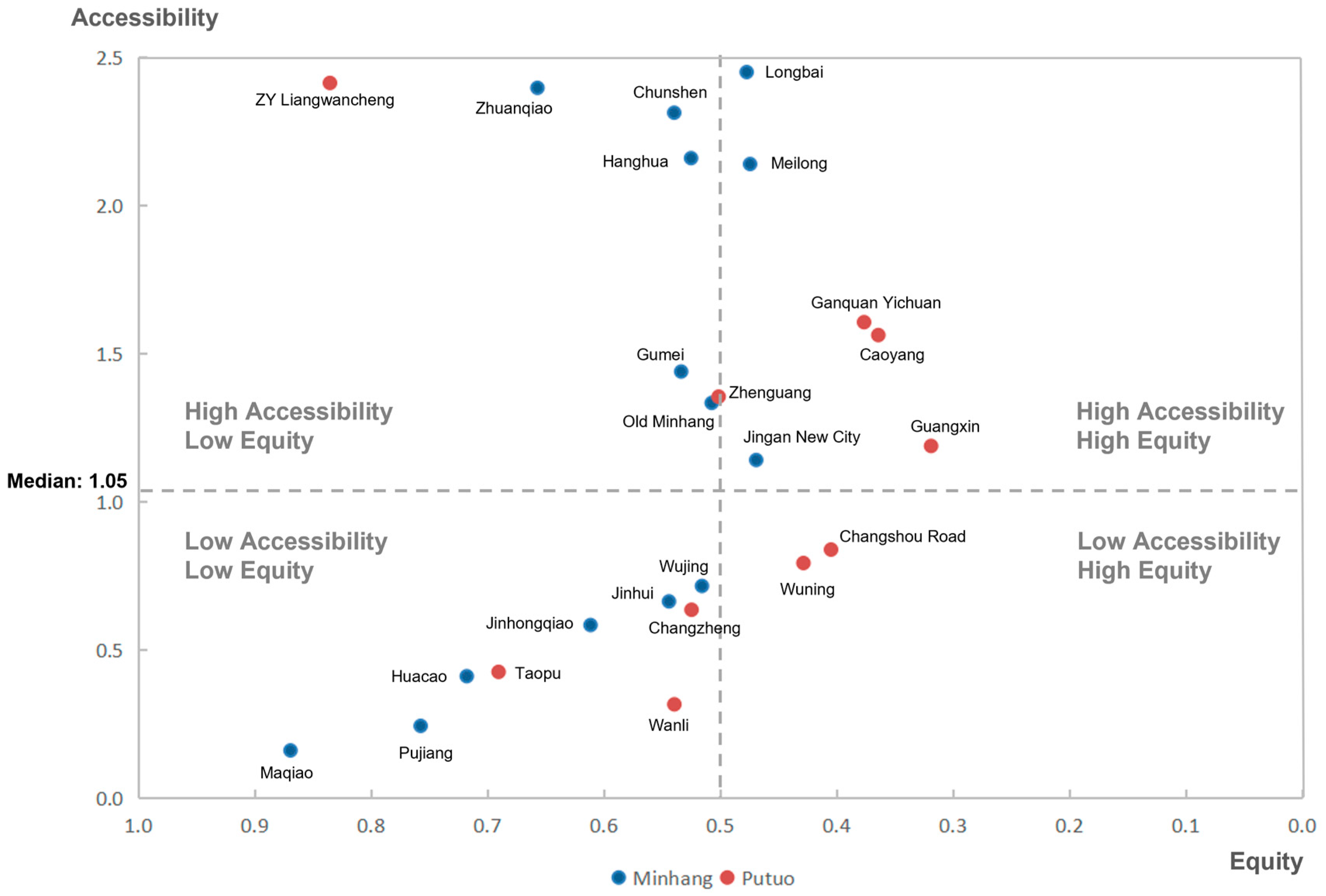 4.3. Accessibility–Equity Relationship