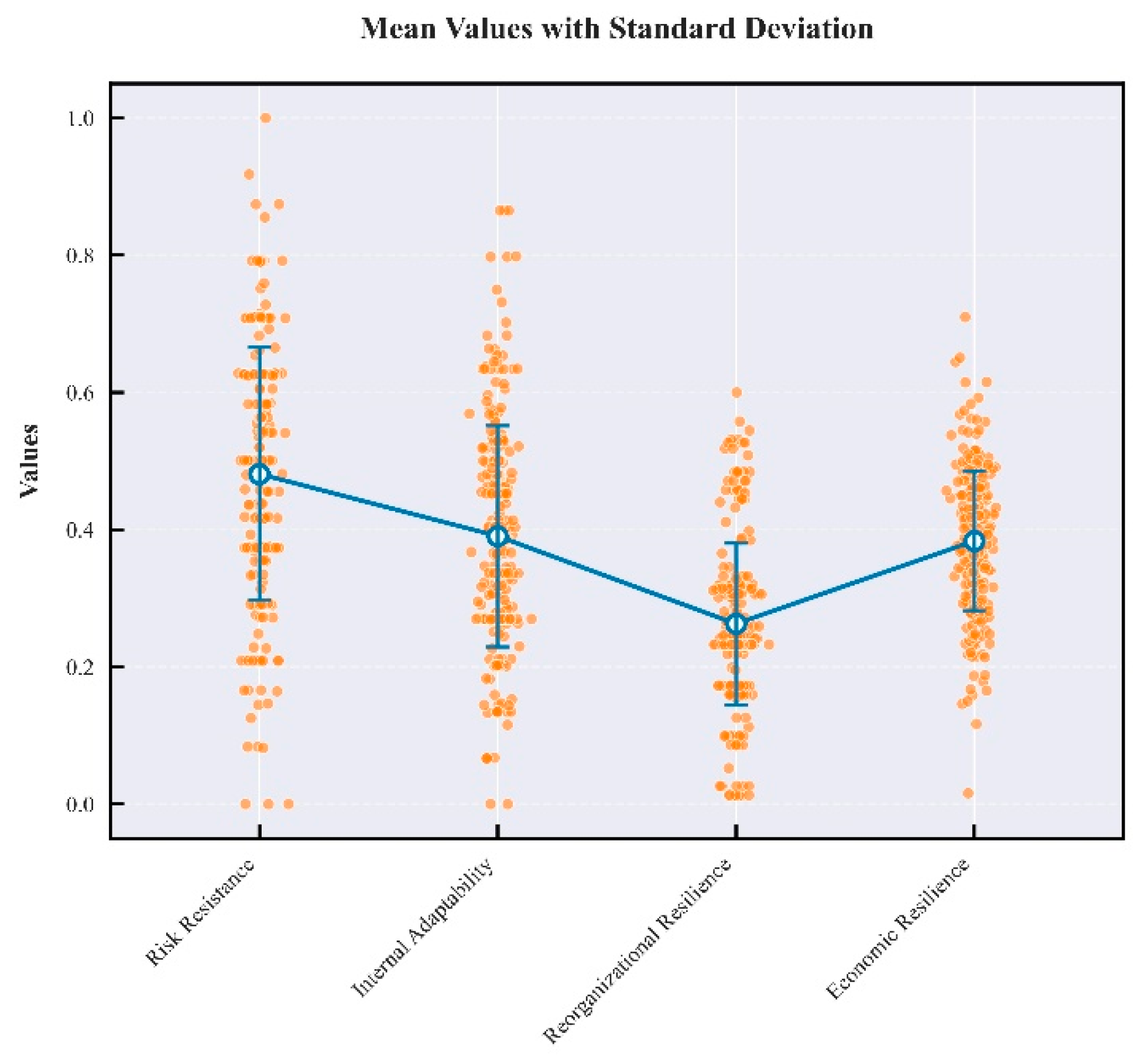 25]. High resilience implies the ability to rapidly restore function and supply chains during crises by mobilizing internal and external resources, typically encompassing three core capacities: resistance capacity, recovery capacity, and reorganization capacity [